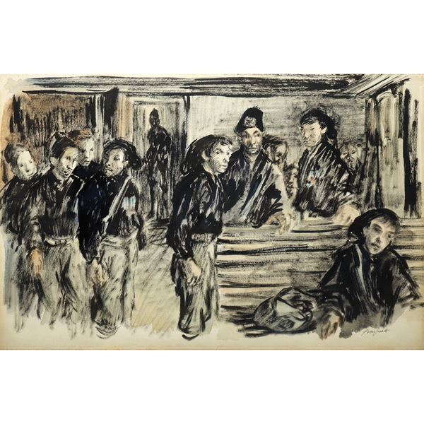 tempera and ink on cardboard