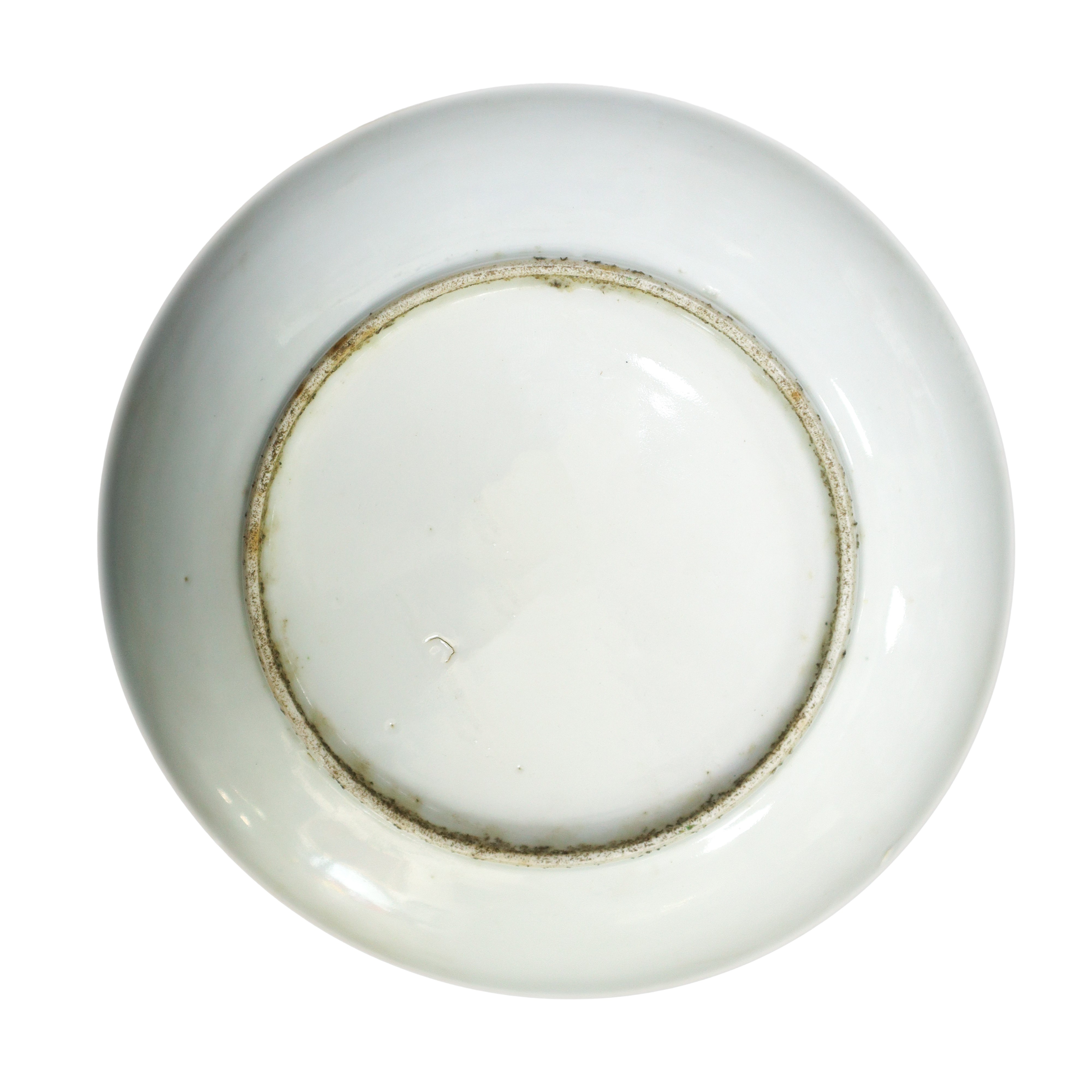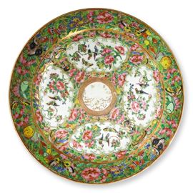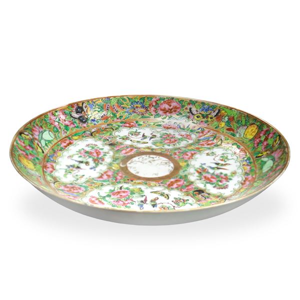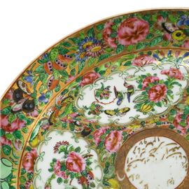 Chinese polychrome painted plate with floral decorations, birds and butterflies in relief