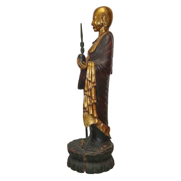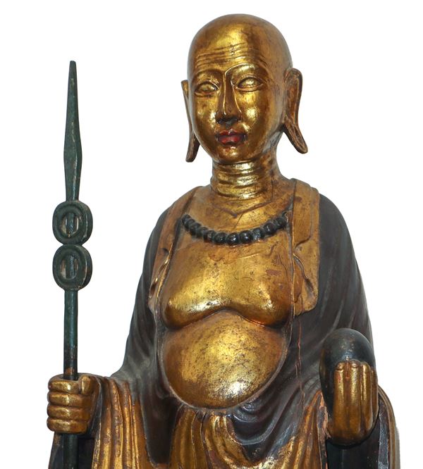 Polychrome wooden Buddha in tempera and gold, 19th century