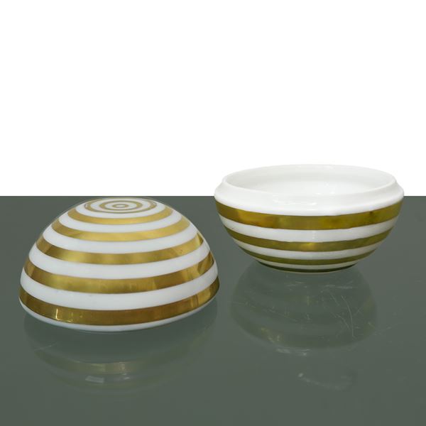 Sphere Jewelry Box in White Porcelain with Gold Finishes