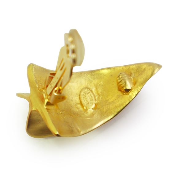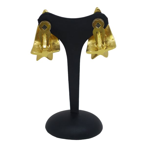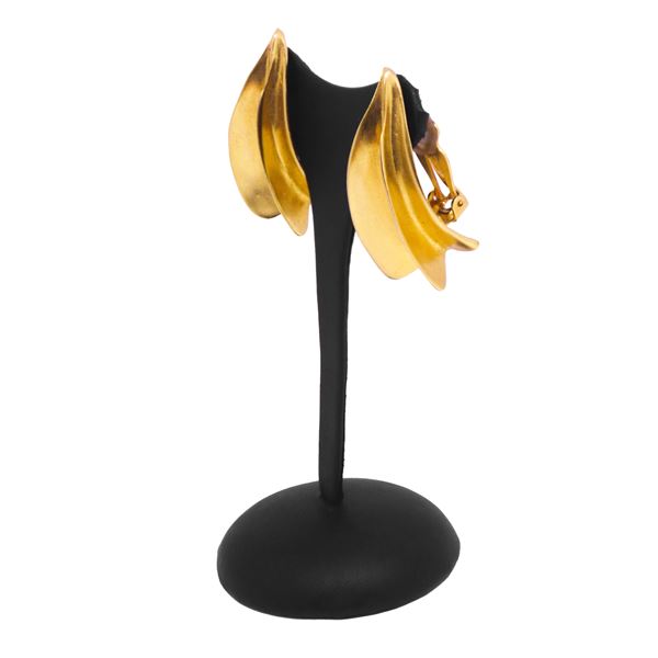 Gold-tone metal three-dimensional abstract clip-on earrings