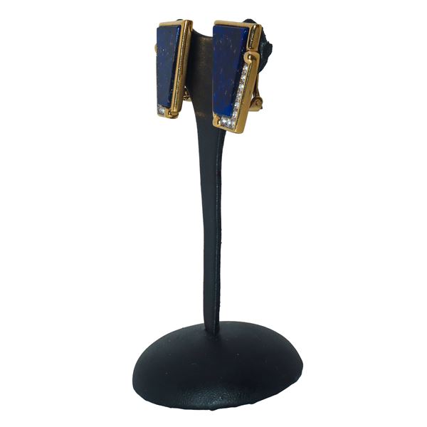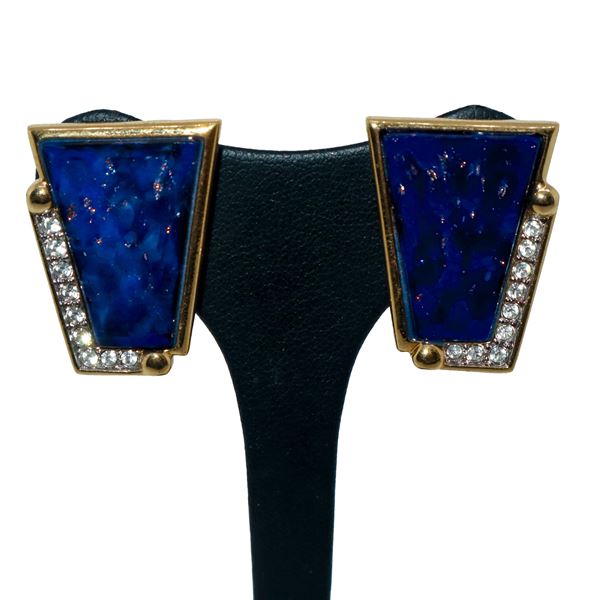Vintage clip-on earrings in gold-plated metal with blue stone and rhinestones