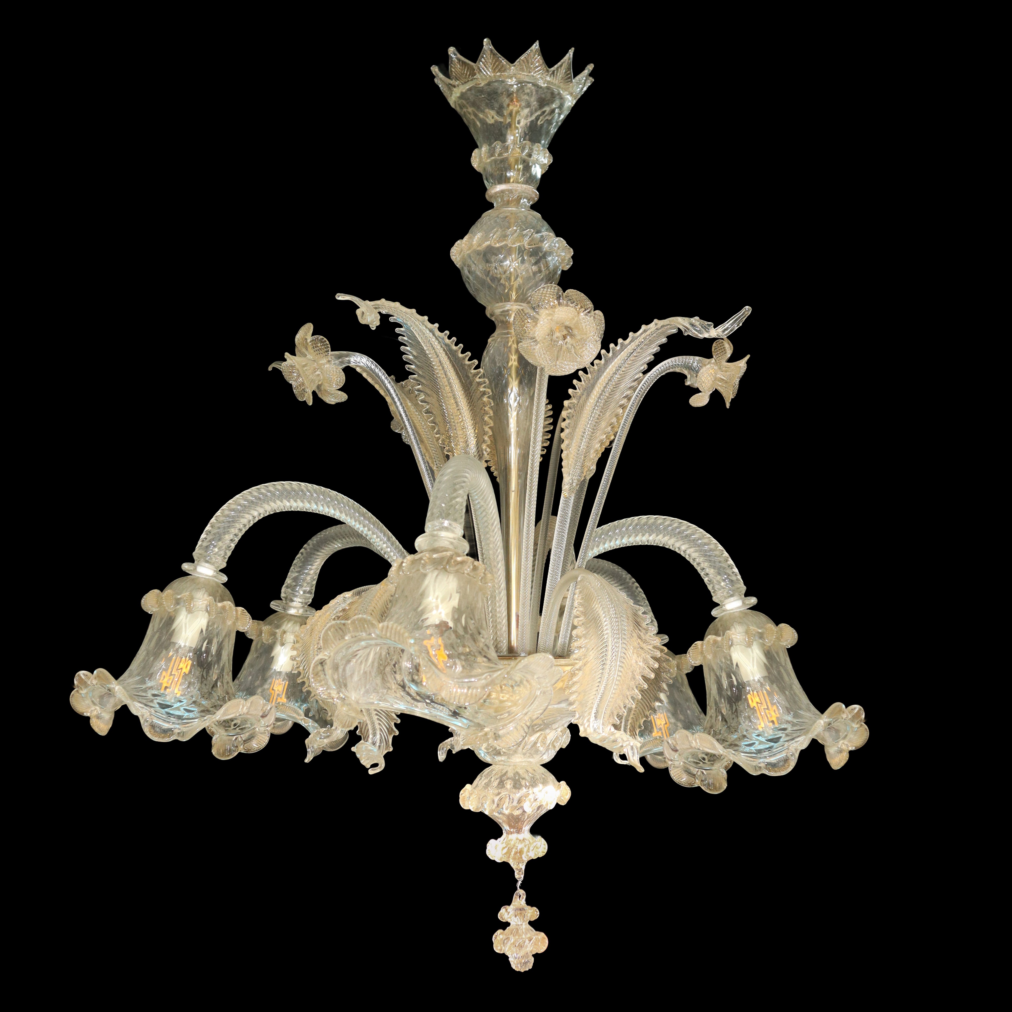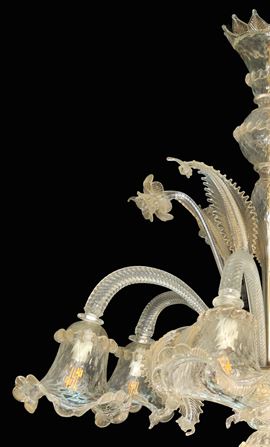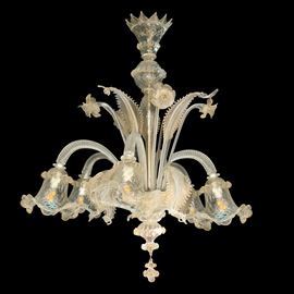 6-light Murano glass chandelier in clear glass