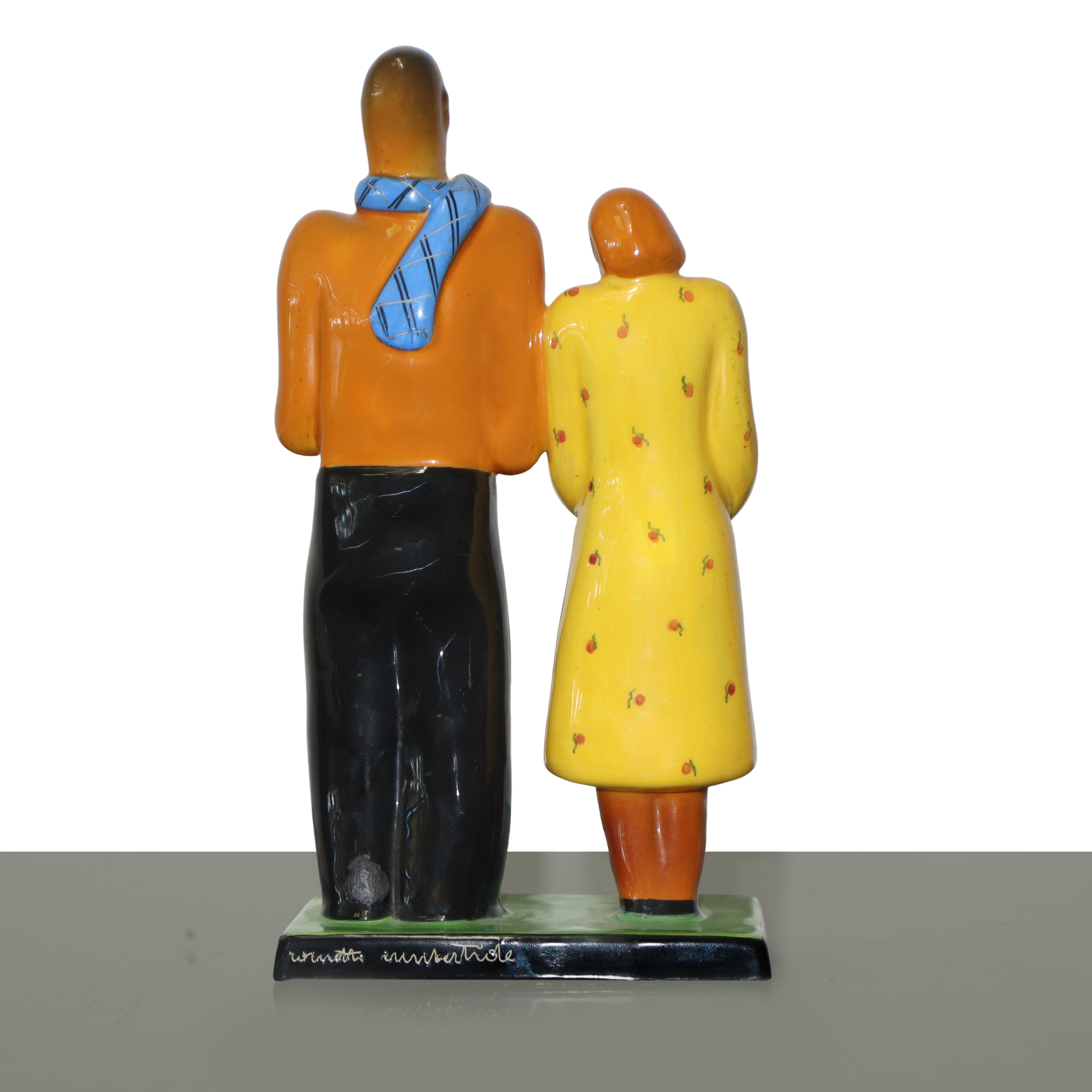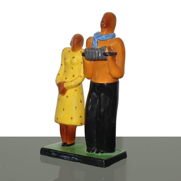 Pair of terracotta figurines modeled with a polychrome enamel mold
