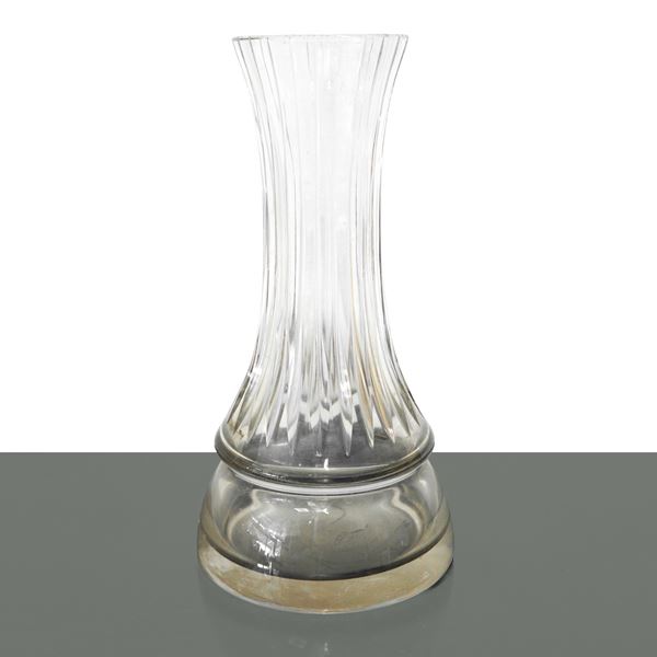 Glass vase with vertical grooves