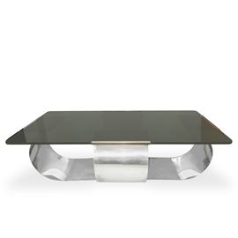 Coffee table with glass top and chromed crystal structure, 1970s
