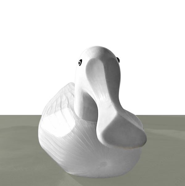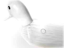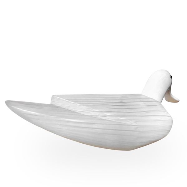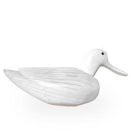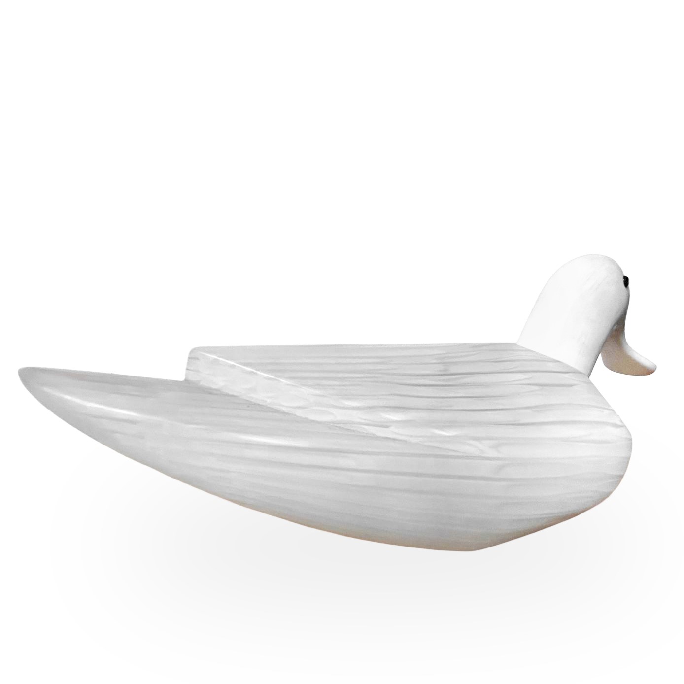 A colorless Murano glass duck with milky-white canework. A sculpture from the "Bestiary" series., Murano, 1996