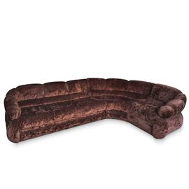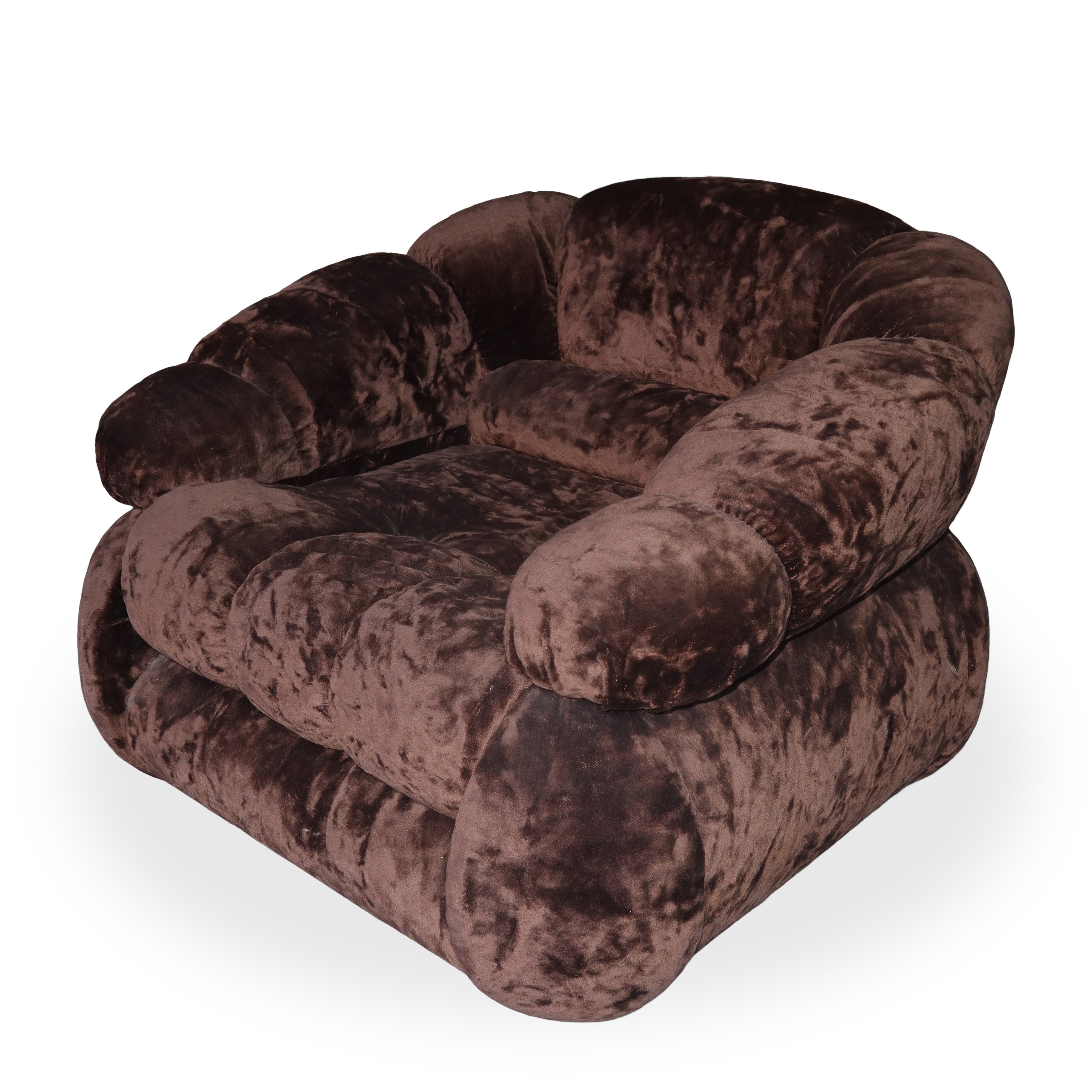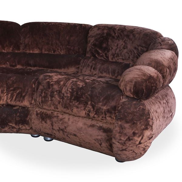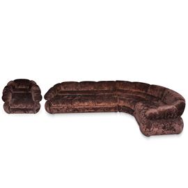 Brown fabric modular sofa with armchair, Premiere model, 70s