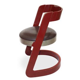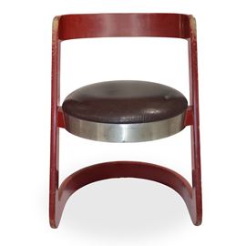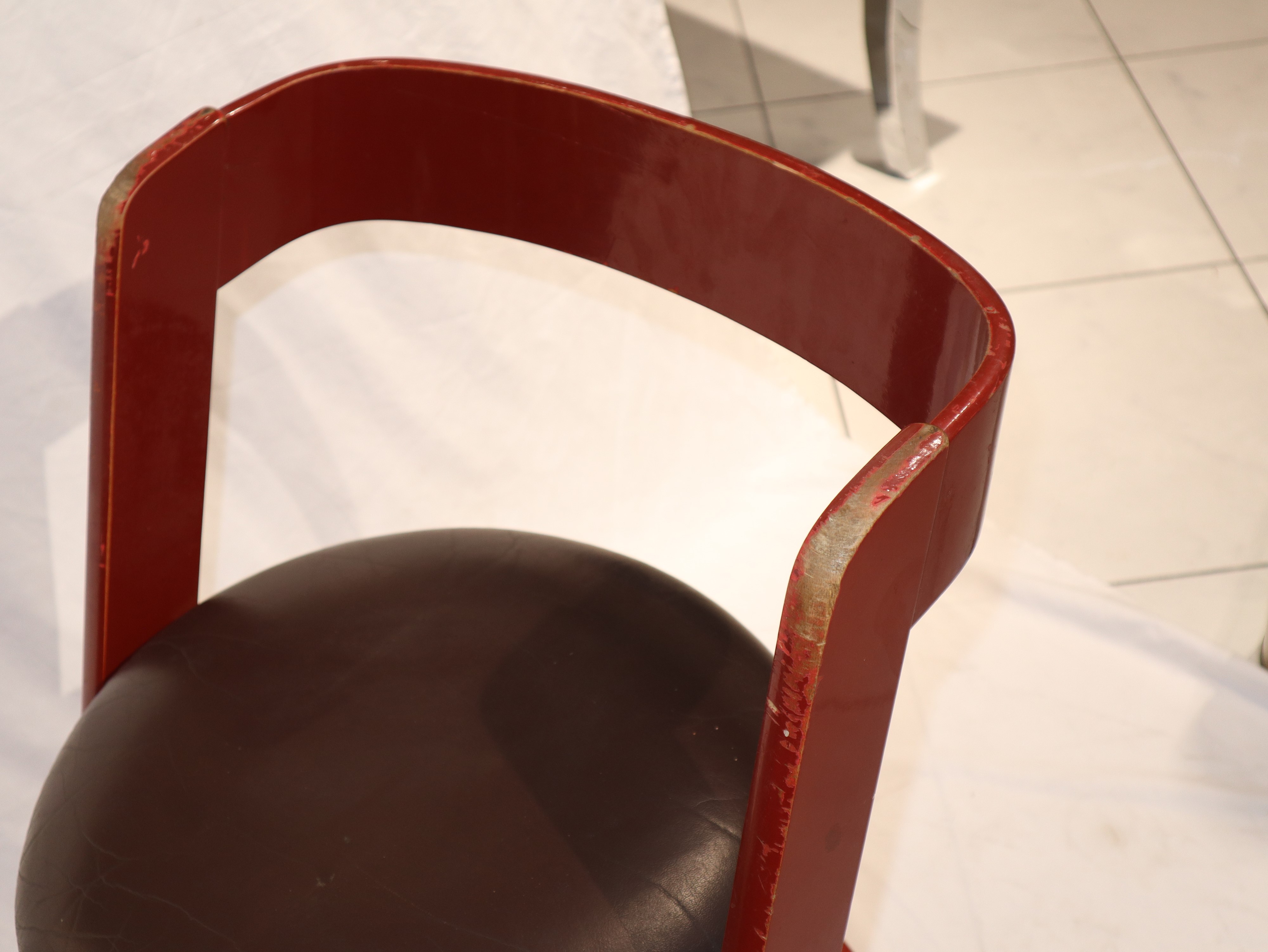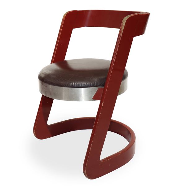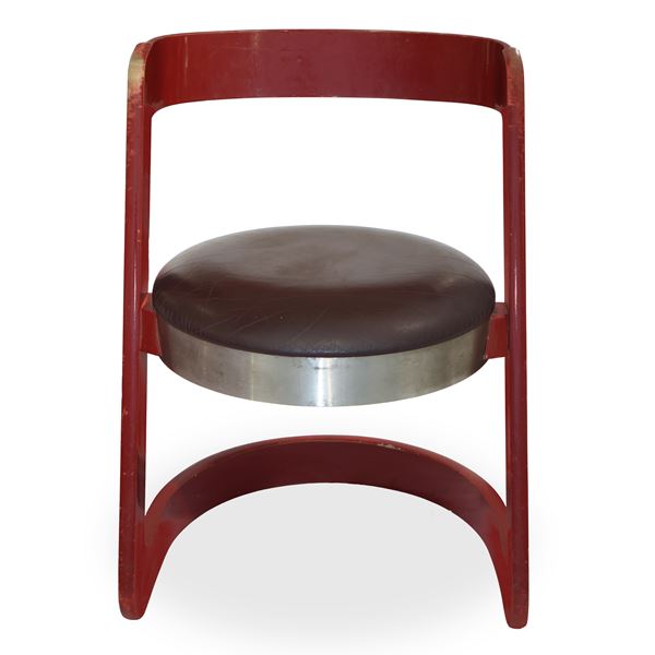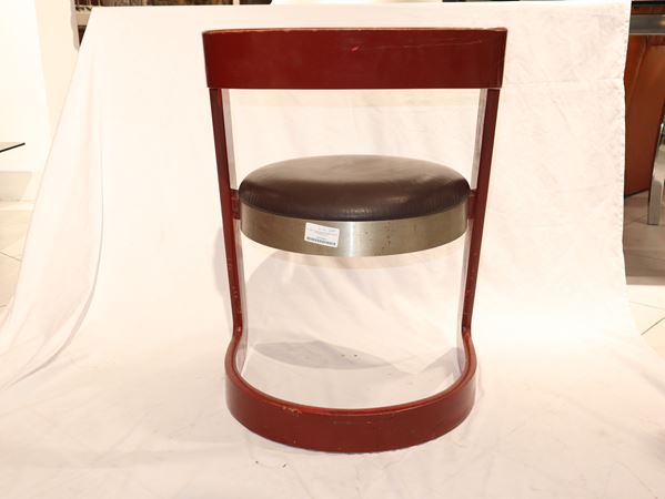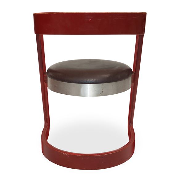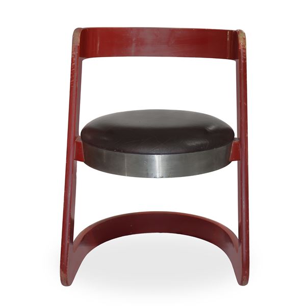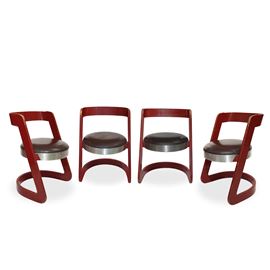 No. 4 chairs in red lacquered wood and steel seat, Italy 1960s