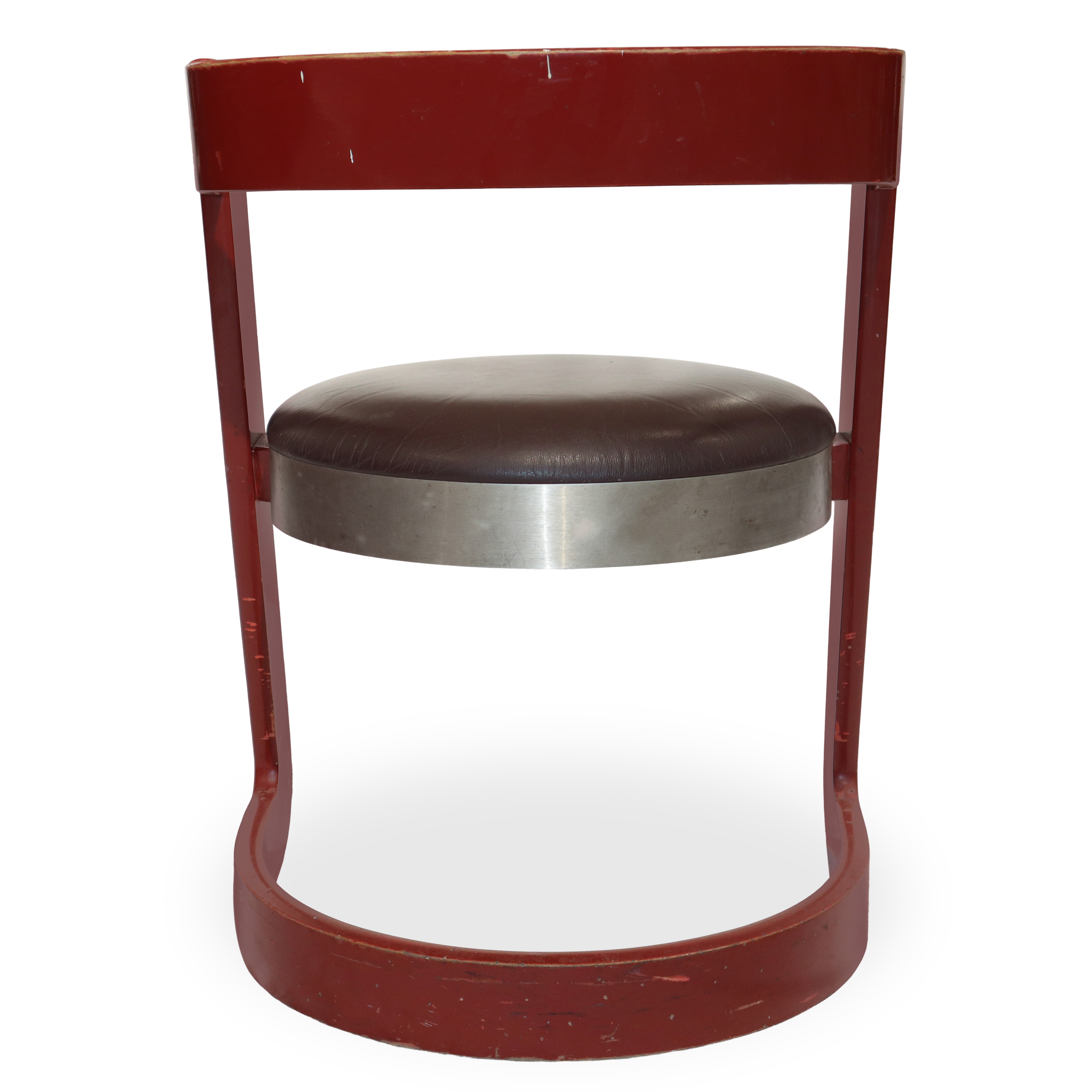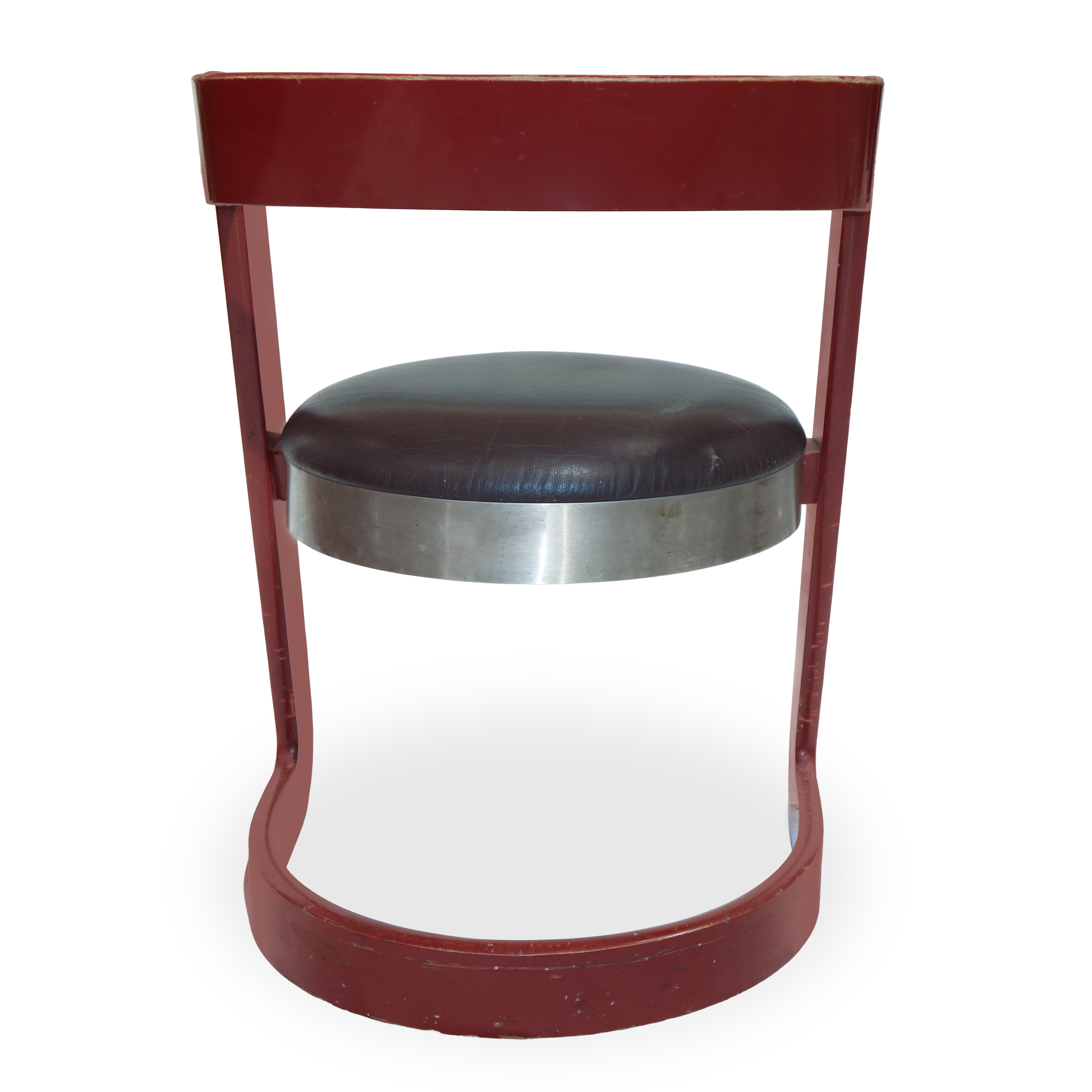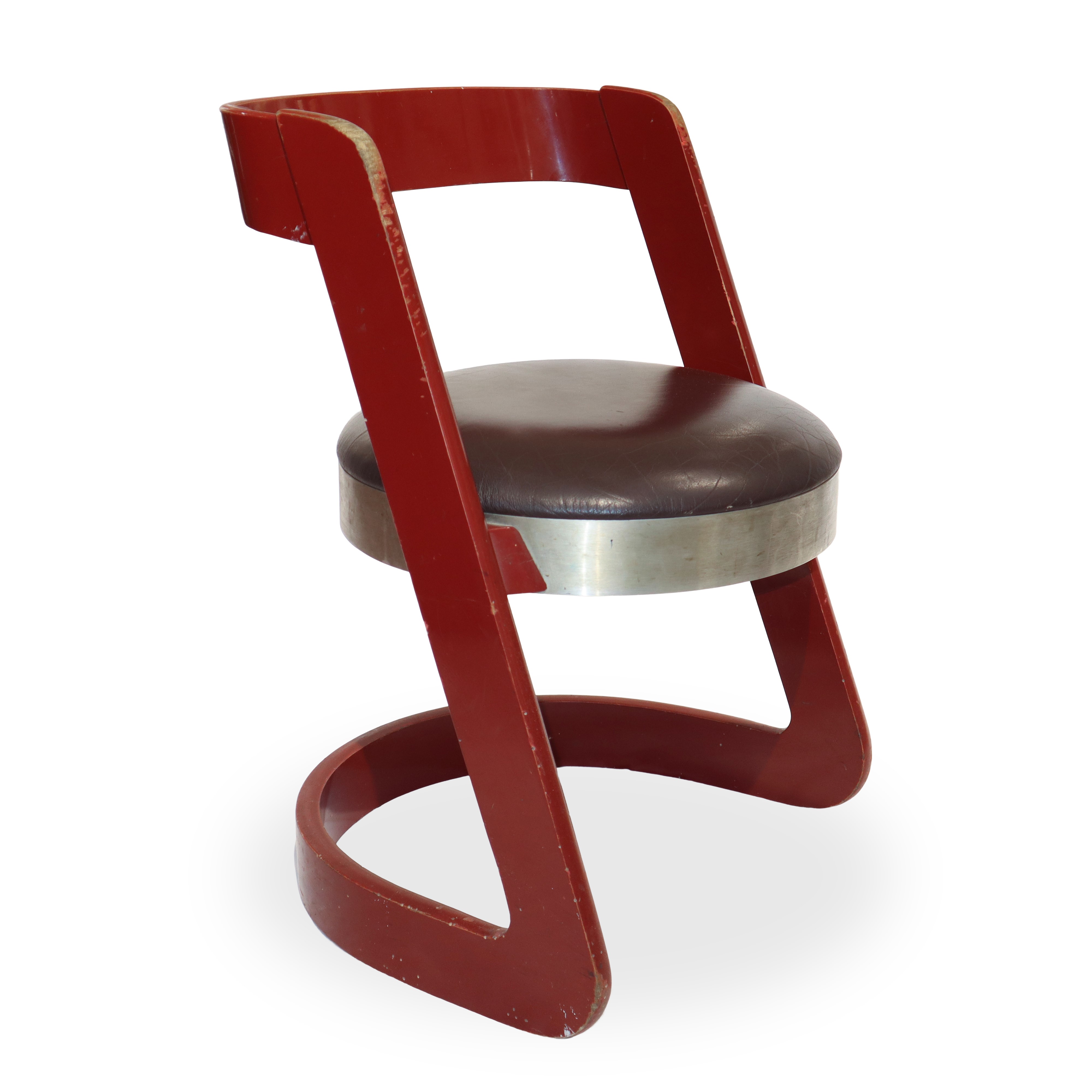 No. 4 chairs in red lacquered wood and steel seat, Italy 1960s