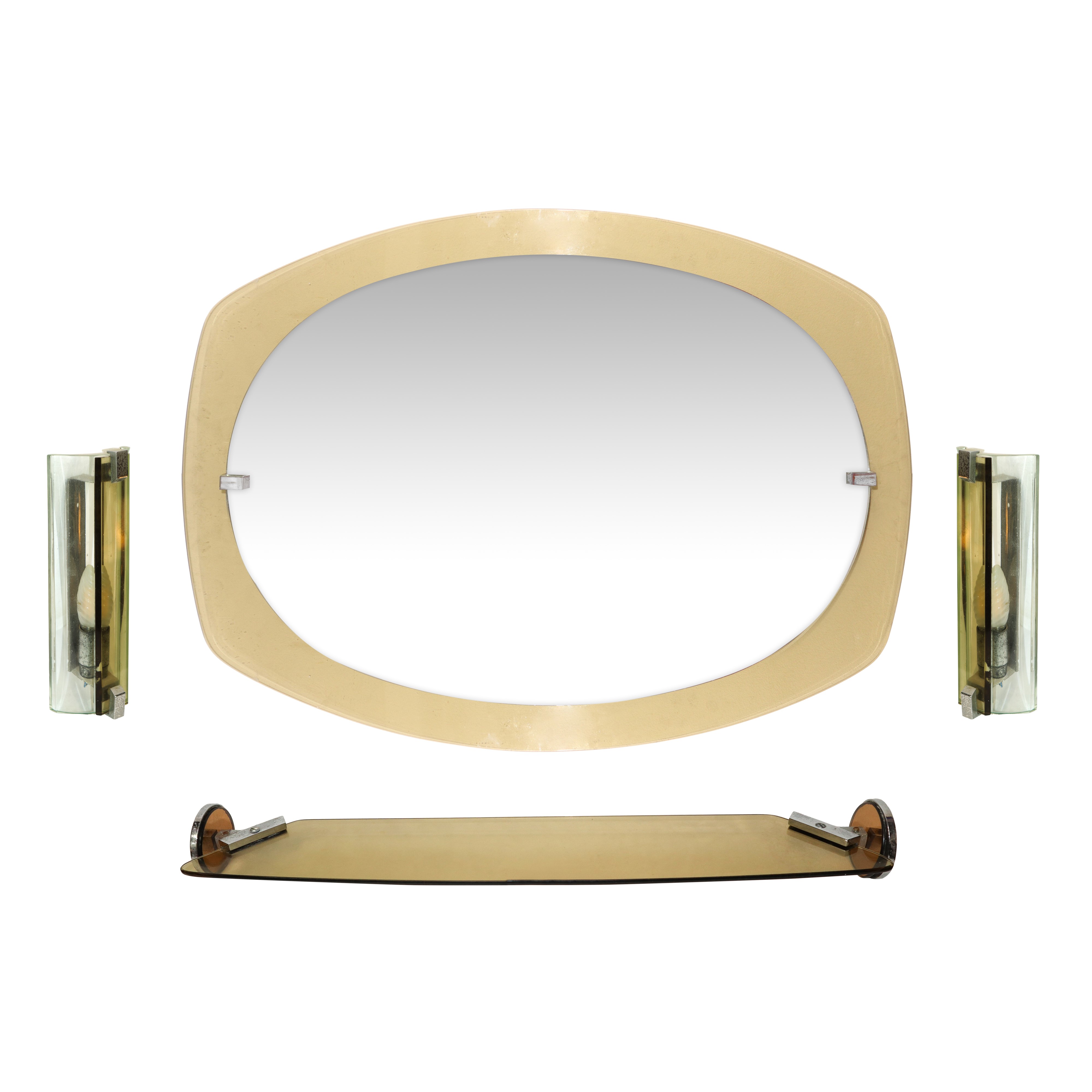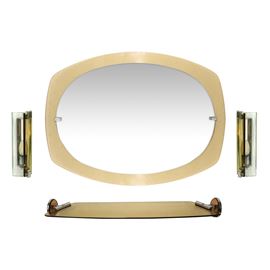 Consisting of: mirror, 2 wall lamps, shelf.