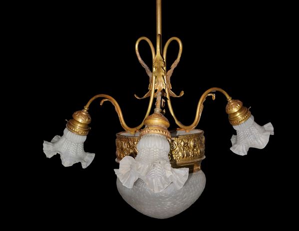 4-light chandelier in tulip glass with central cup