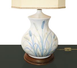 Majolica lamp with ears of wheat painted on the base