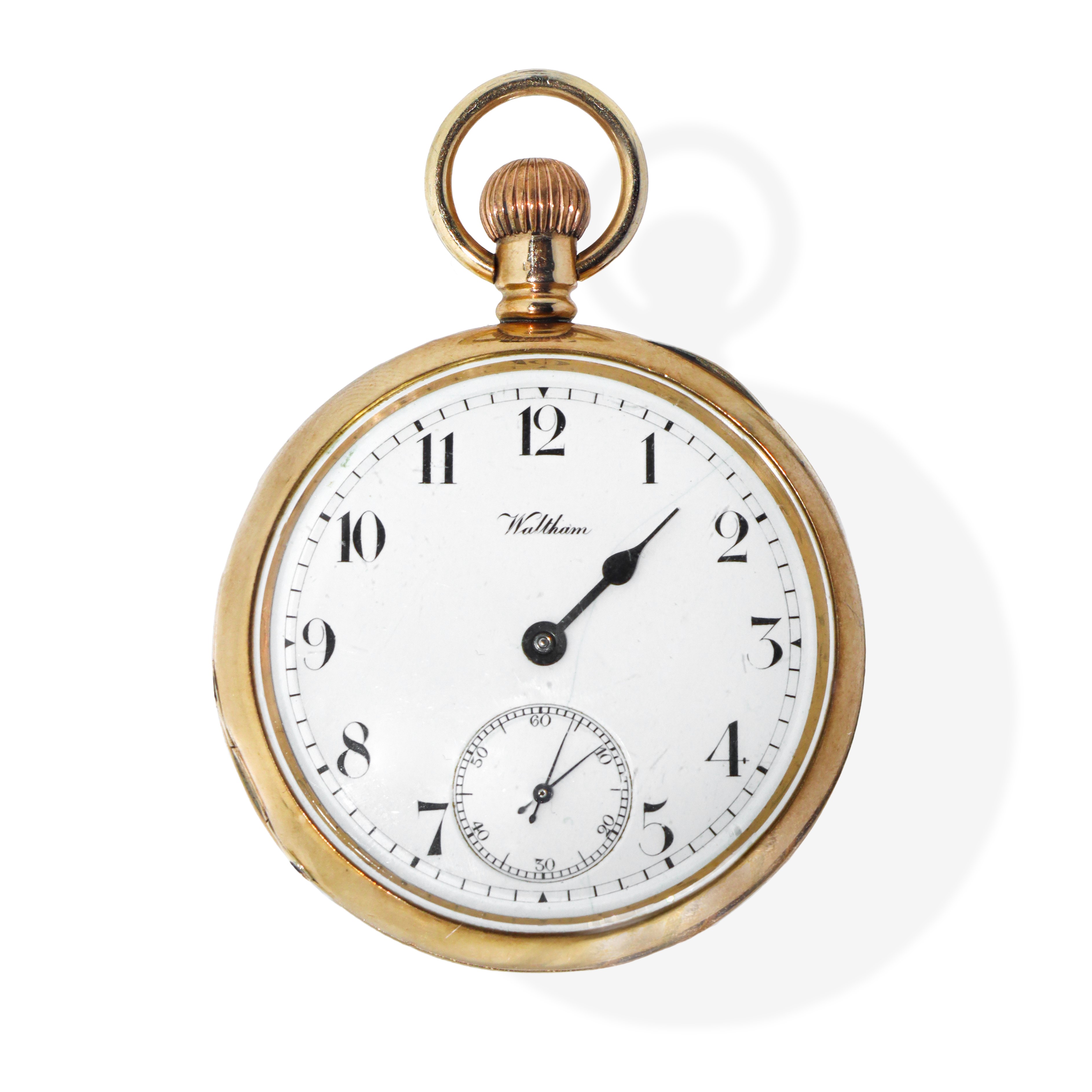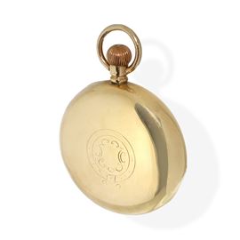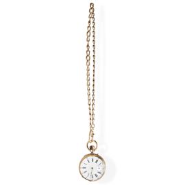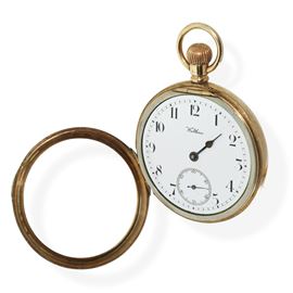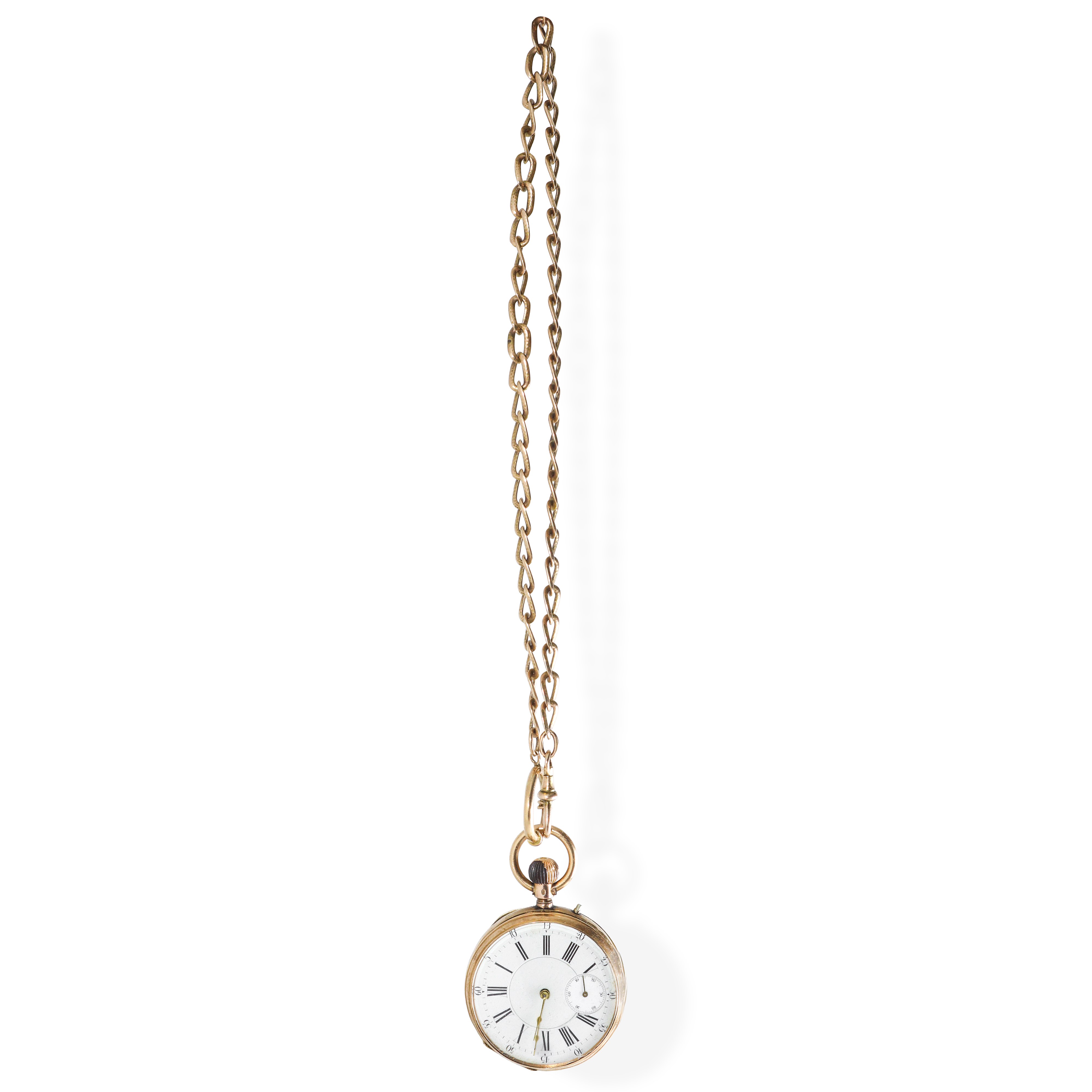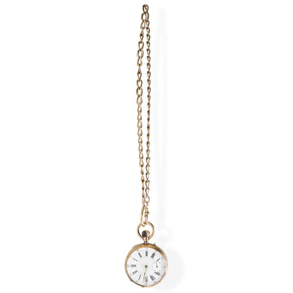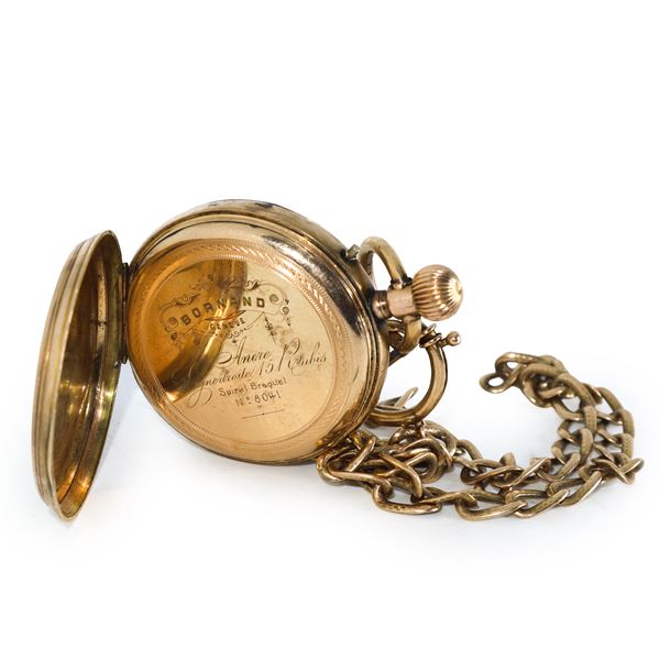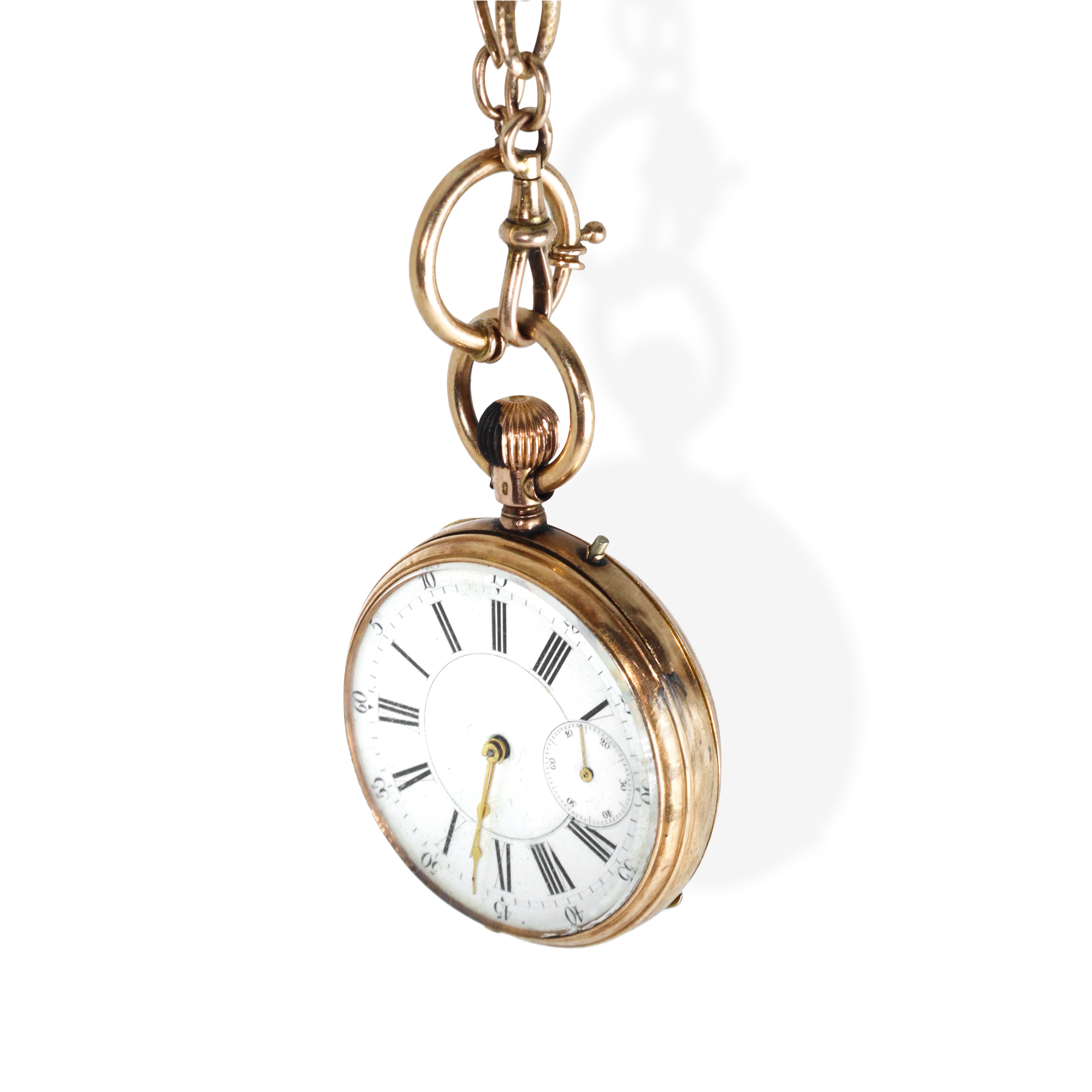 14kt gold hand-wound pocket watch with Breguet spiral and 14kt gold chain