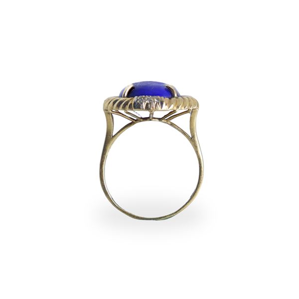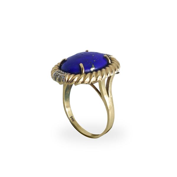 14kt yellow gold cocktail ring with central lapis lazuli