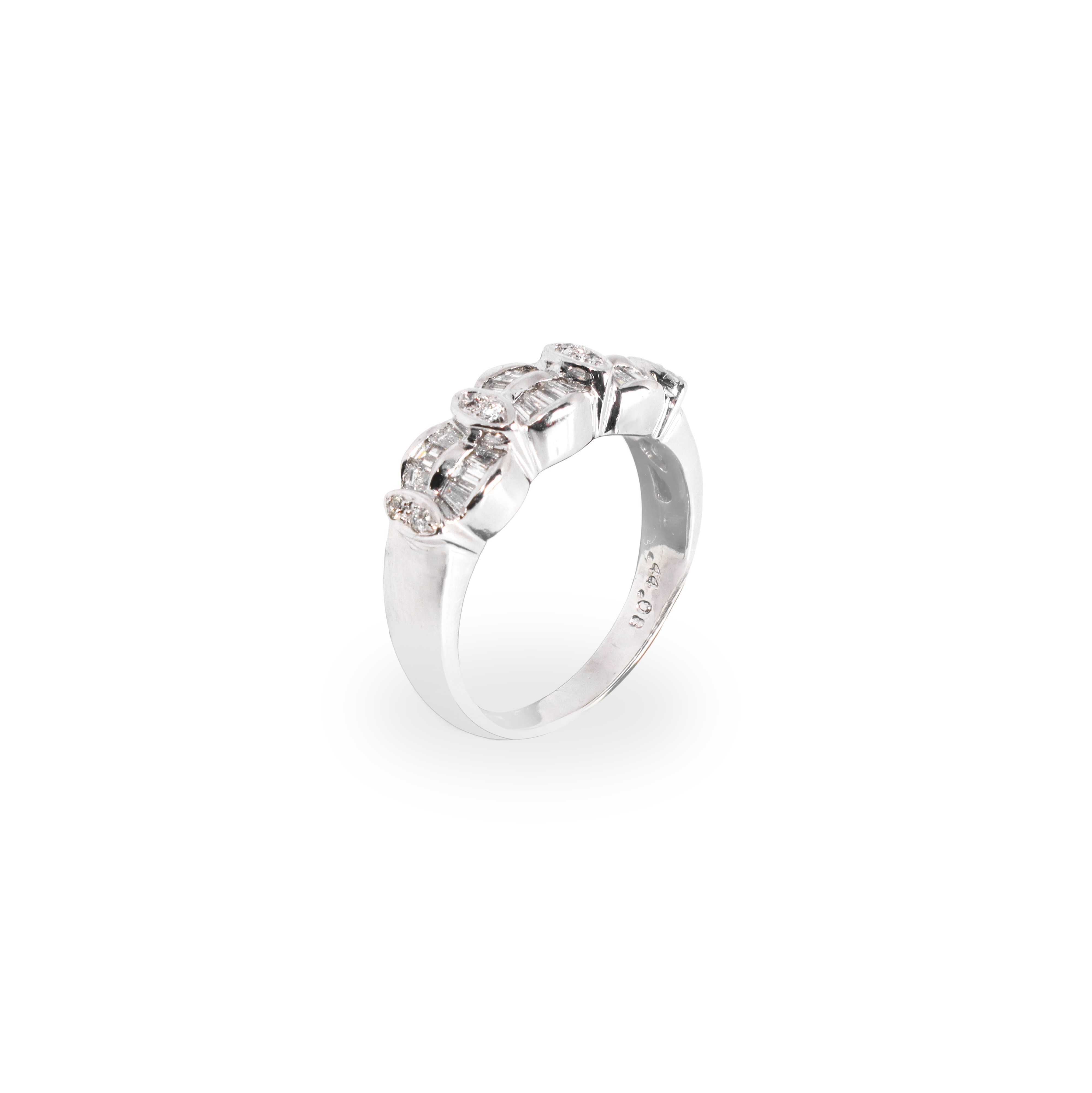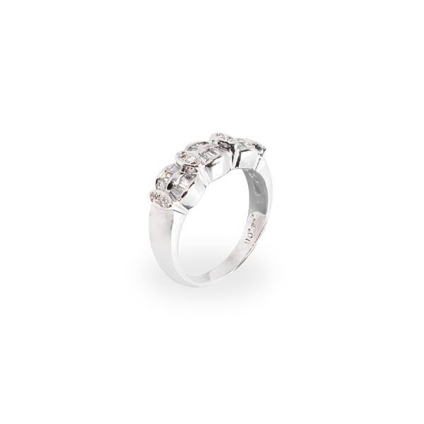 18kt white and yellow gold ring with brilliant-cut and baguette diamonds
