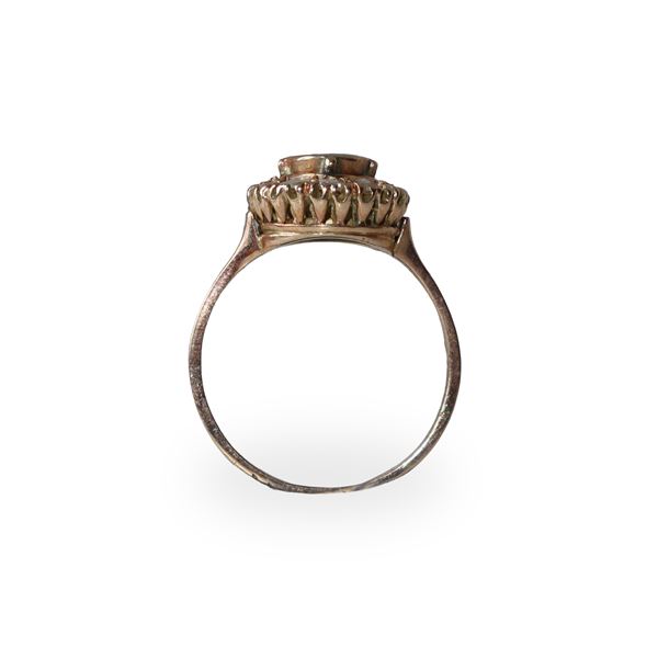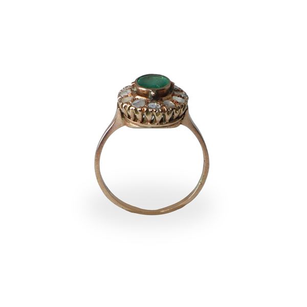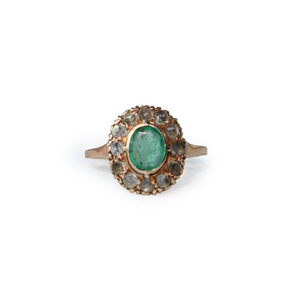 500 gold ring with emerald and old-cut diamonds