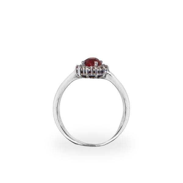 750 white gold ring with ruby and brilliant-cut diamond ring