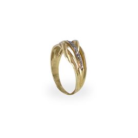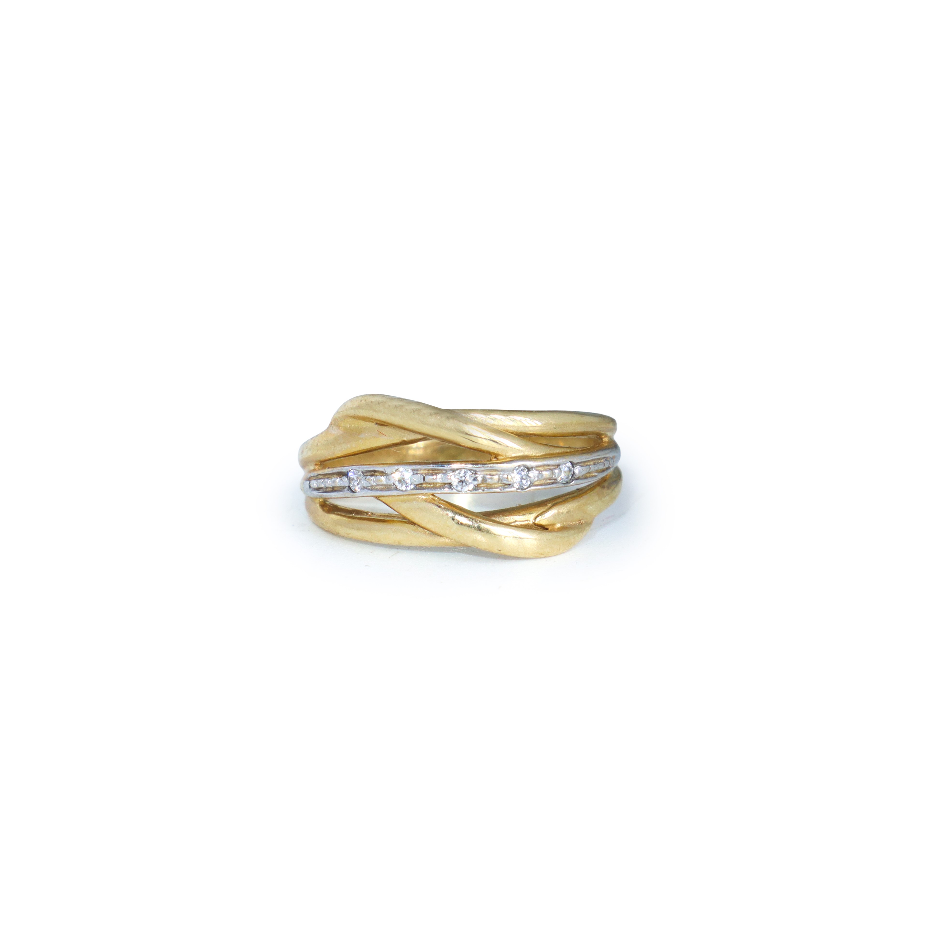 750 yellow gold ring with a row of stones on a small white gold band on the front