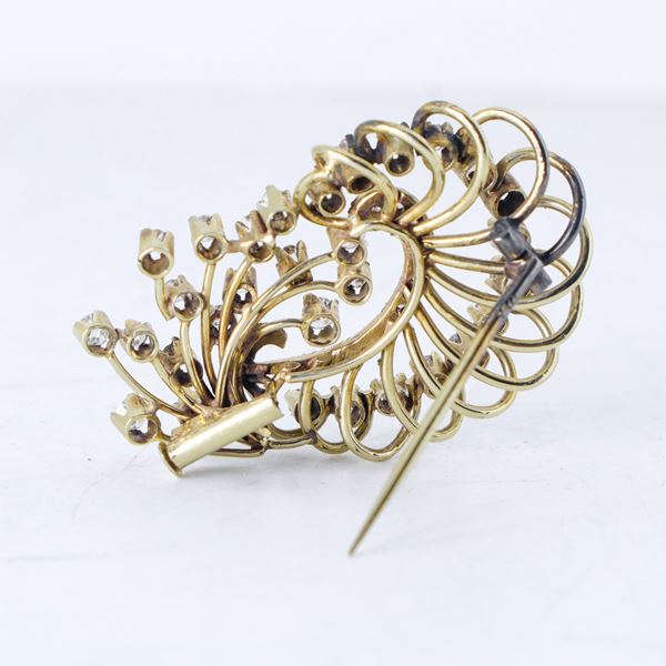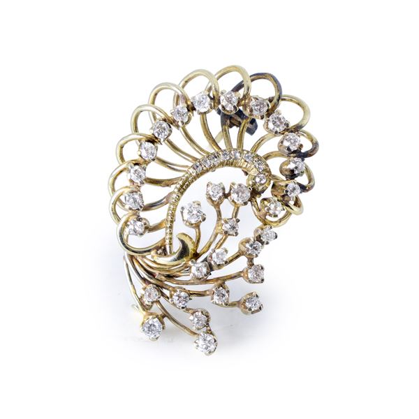 Brooch in 750 yellow gold and diamonds
