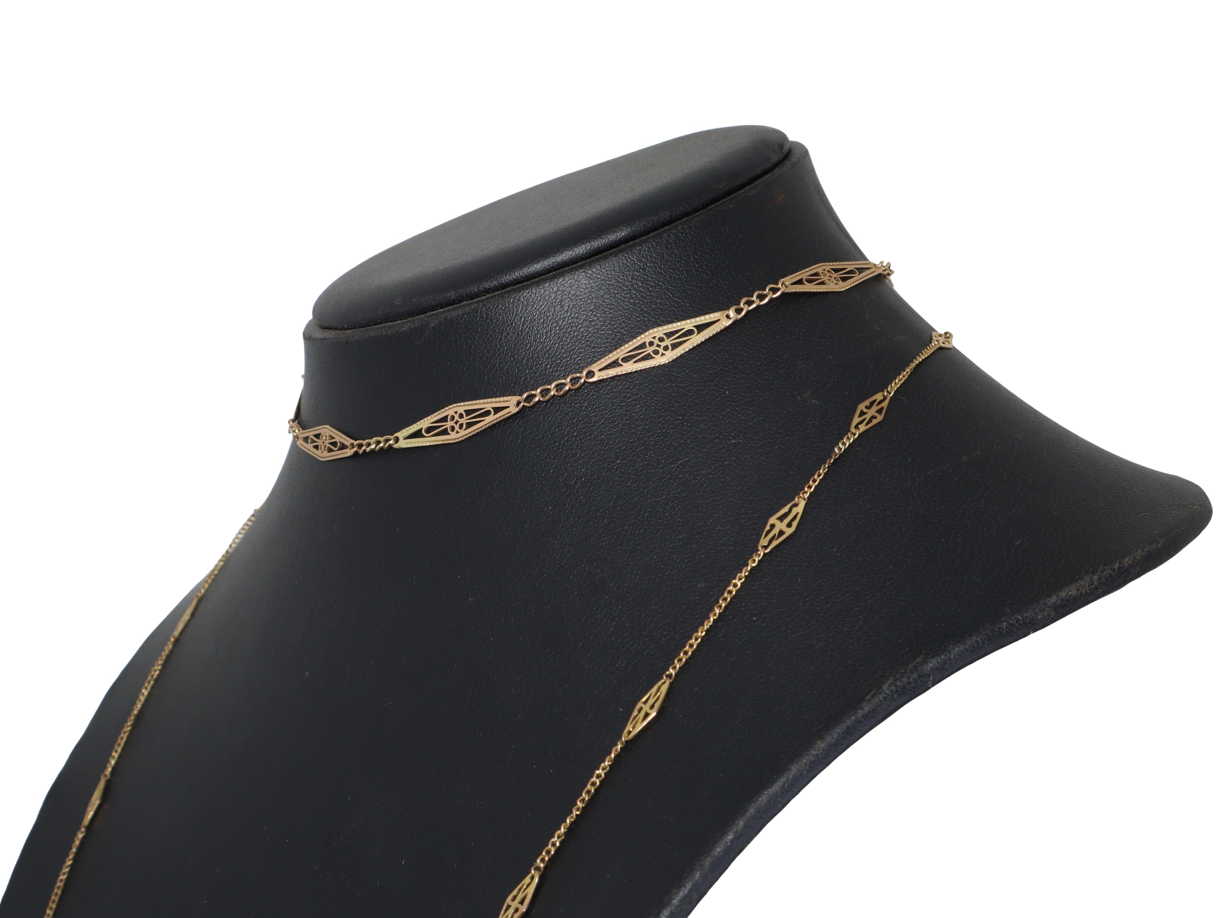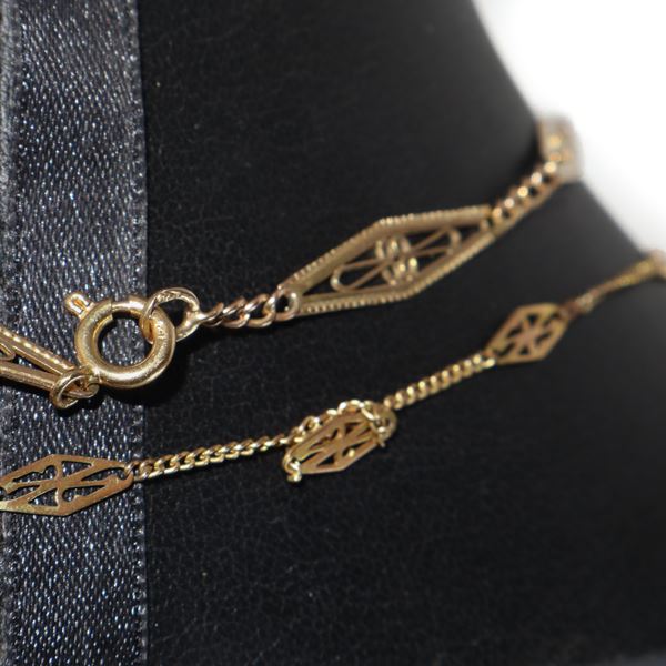 Pair of 750 yellow gold necklaces with triangular decorations
