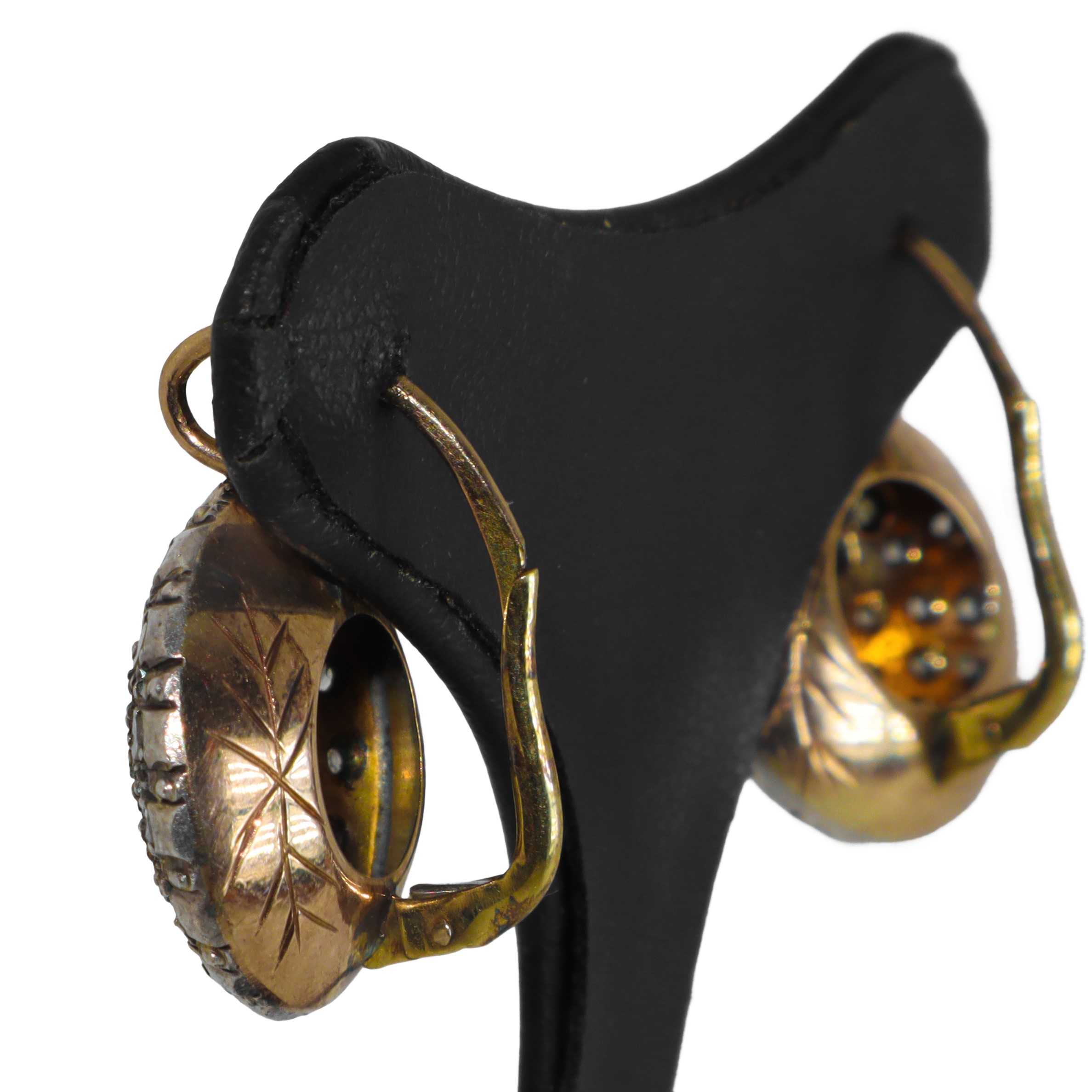 Patch earrings in low-grade gold and silver with old-cut diamonds