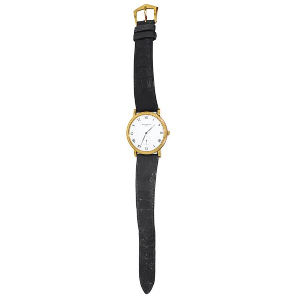 18kt yellow gold case, white ceramic dial with Roman numerals. Reference: 3919J-001. Caliber: 215.