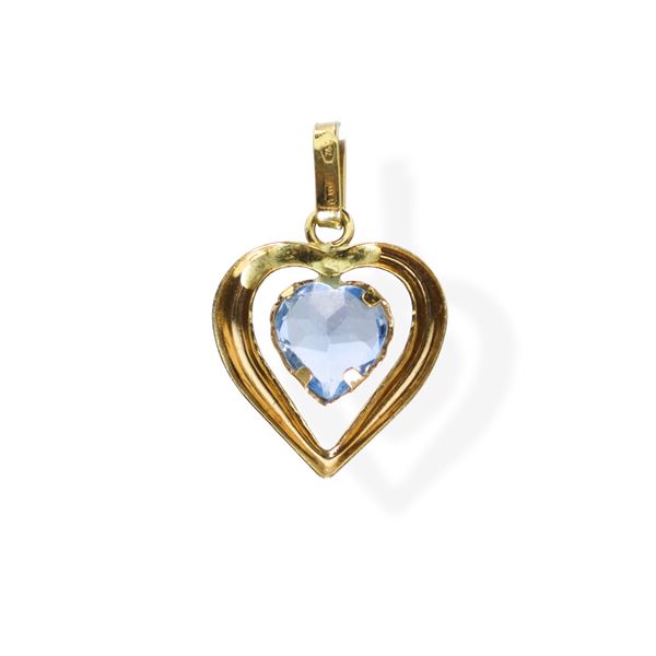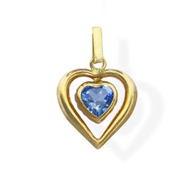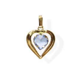 Small heart-shaped pendant in 750 yellow gold with a central aquamarine heart