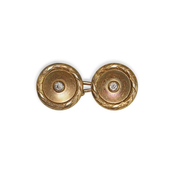 Women's 18kt gold cufflinks with a brilliant-cut diamond in the center