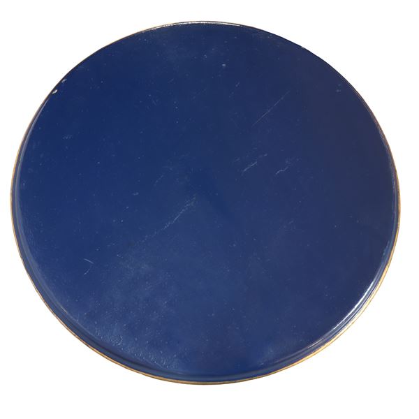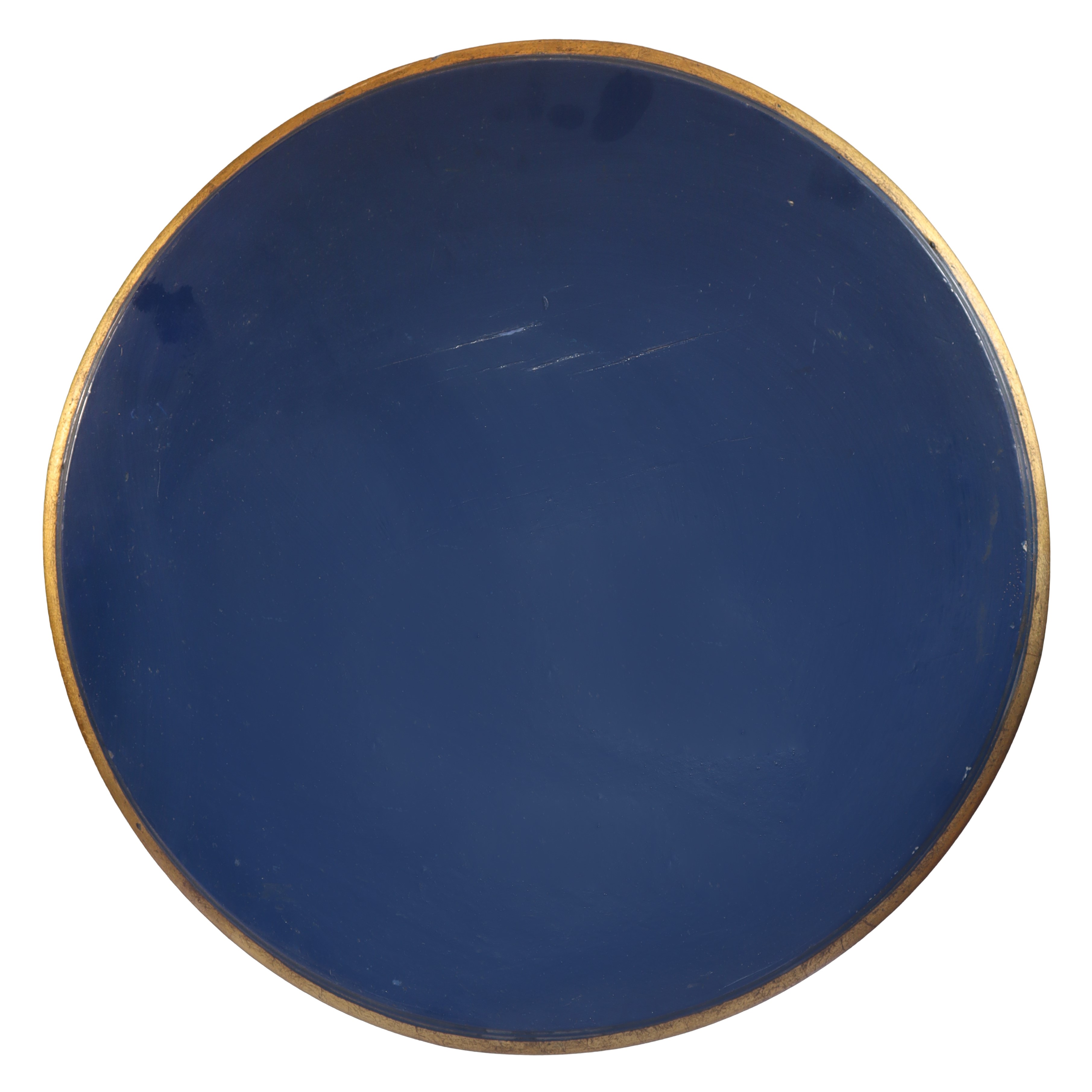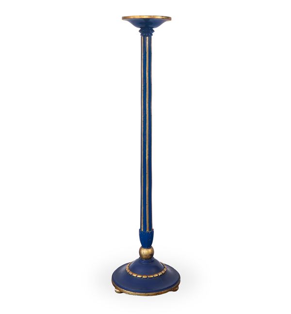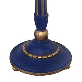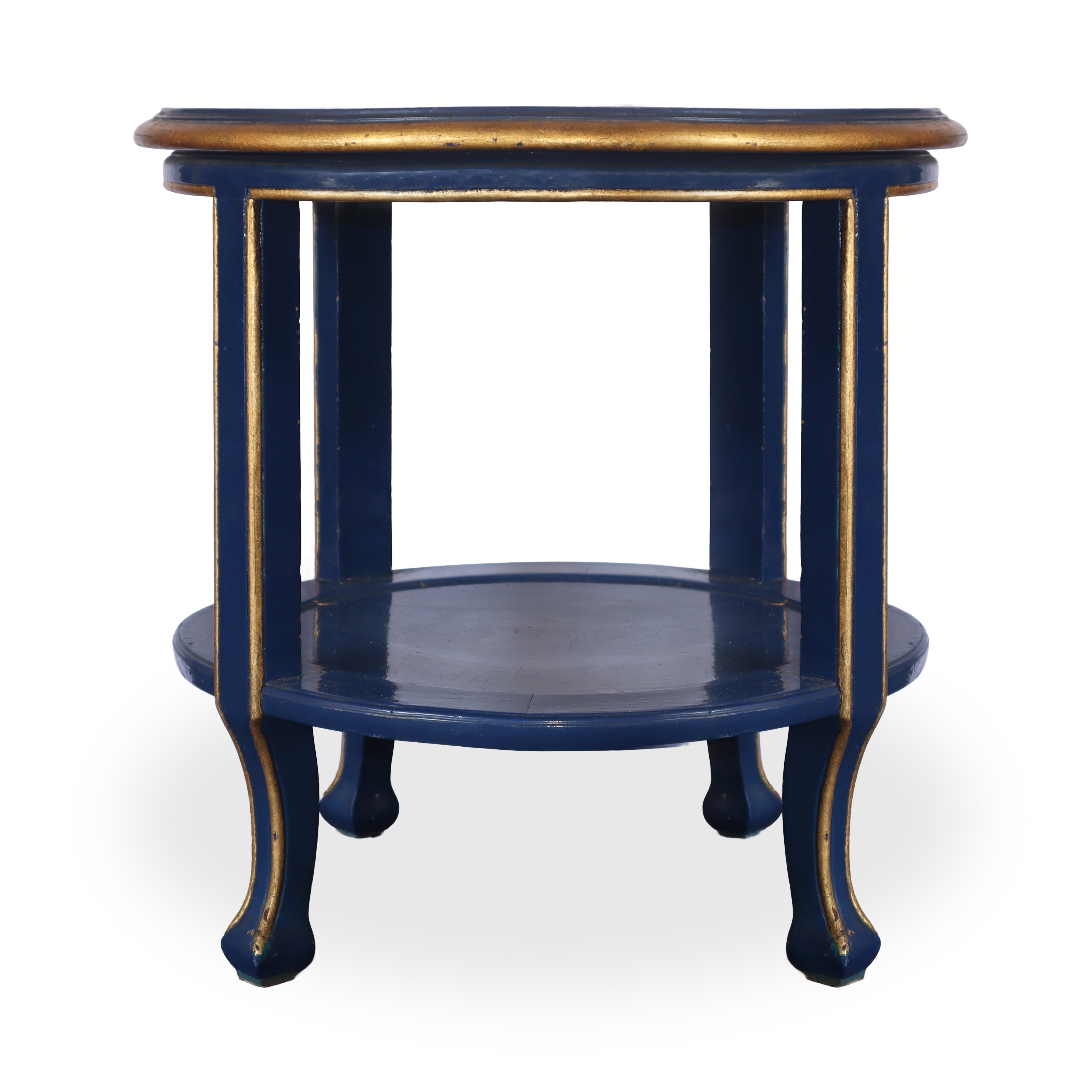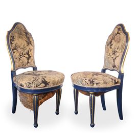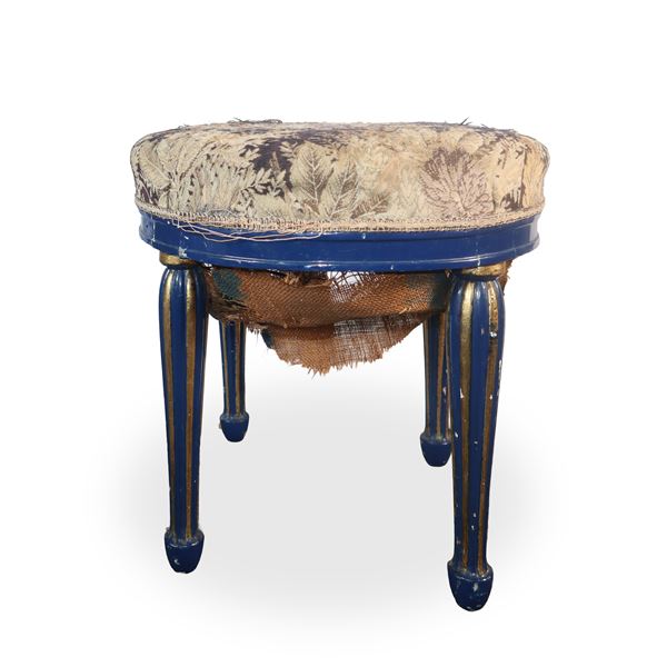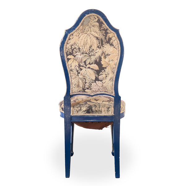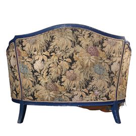 Blue and gold lacquered living room comprising: sofa, 2 armchairs, 4 chairs, 2 coffee tables, 2 poufs and a corner piece, first half of the 20th century