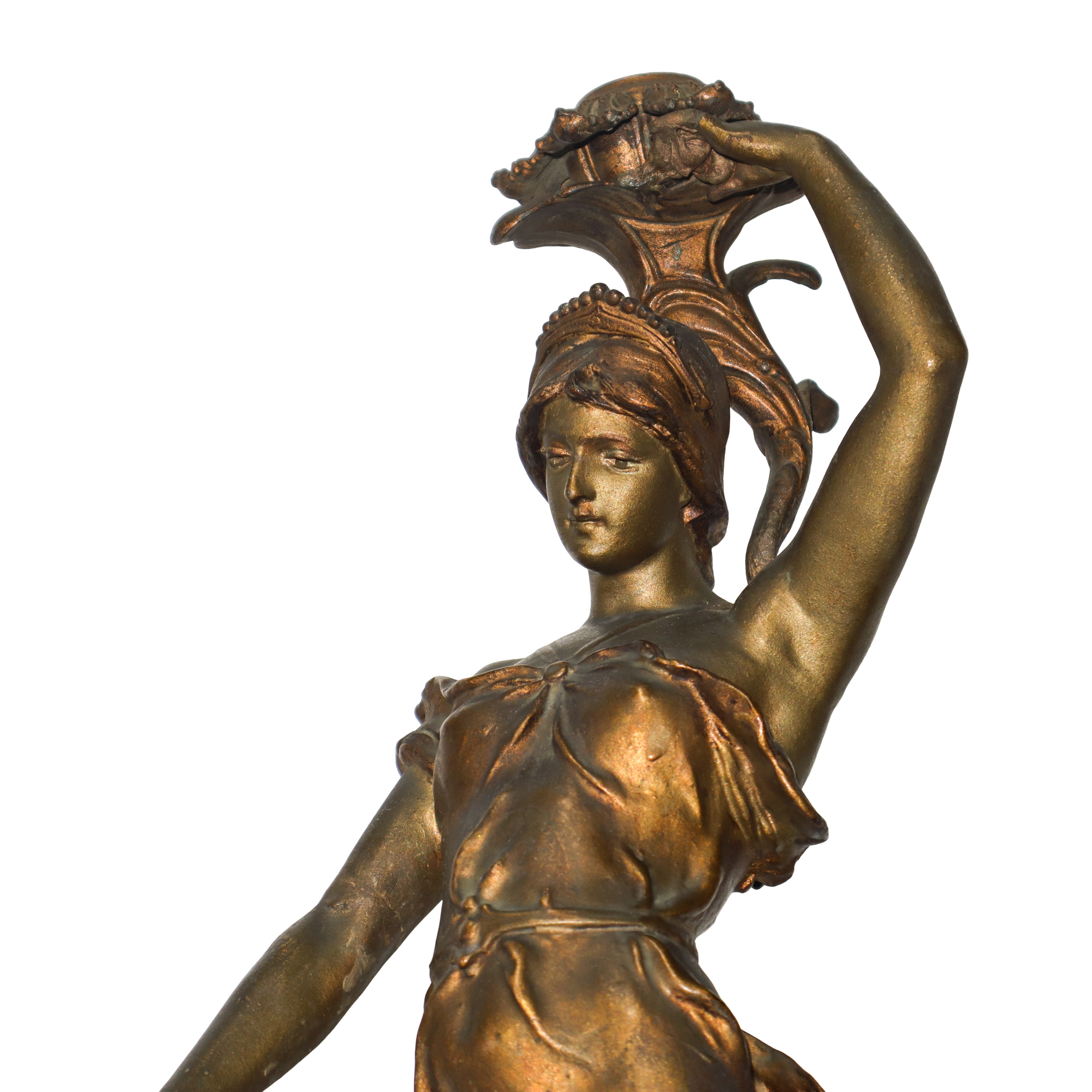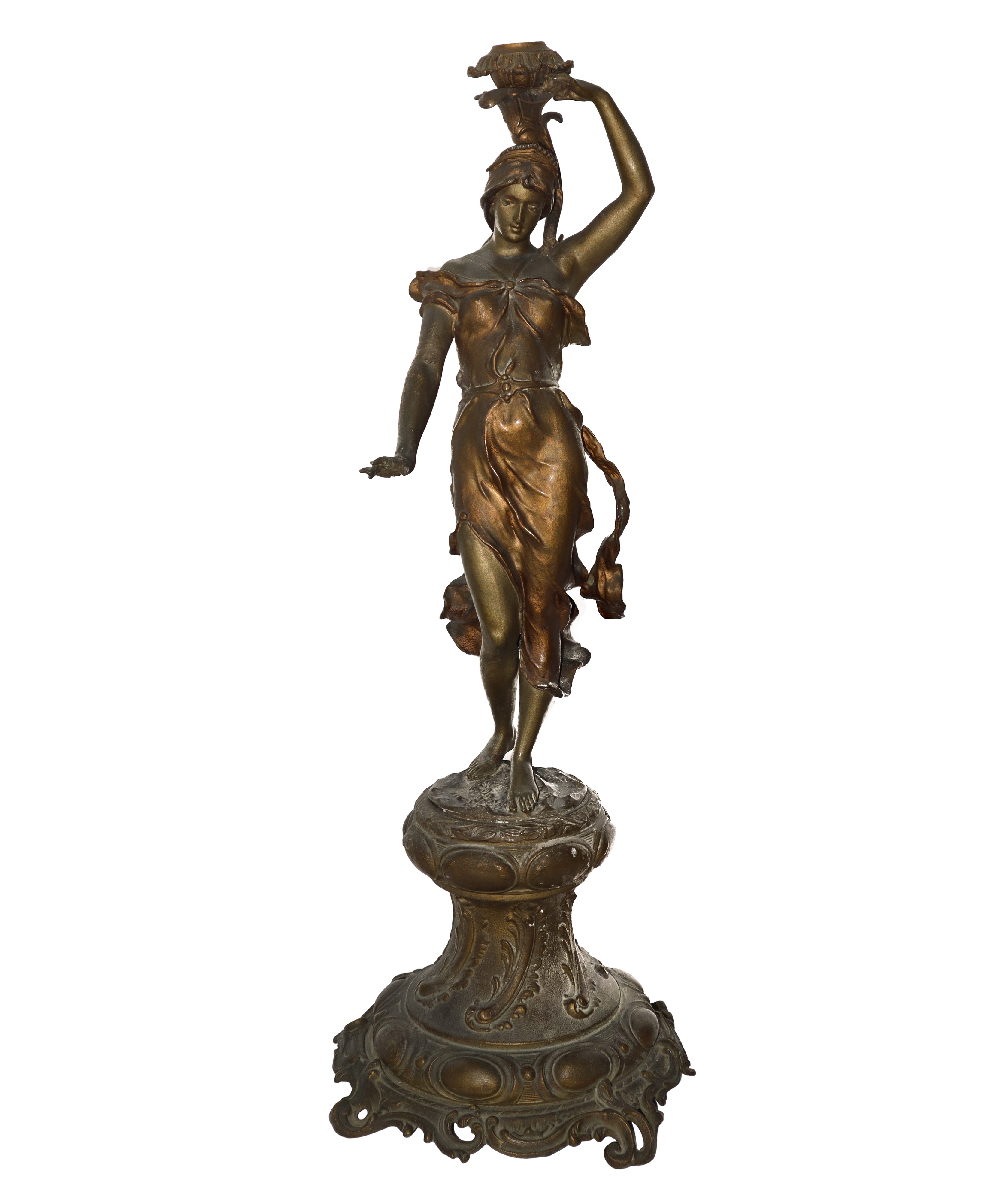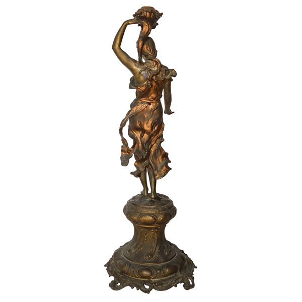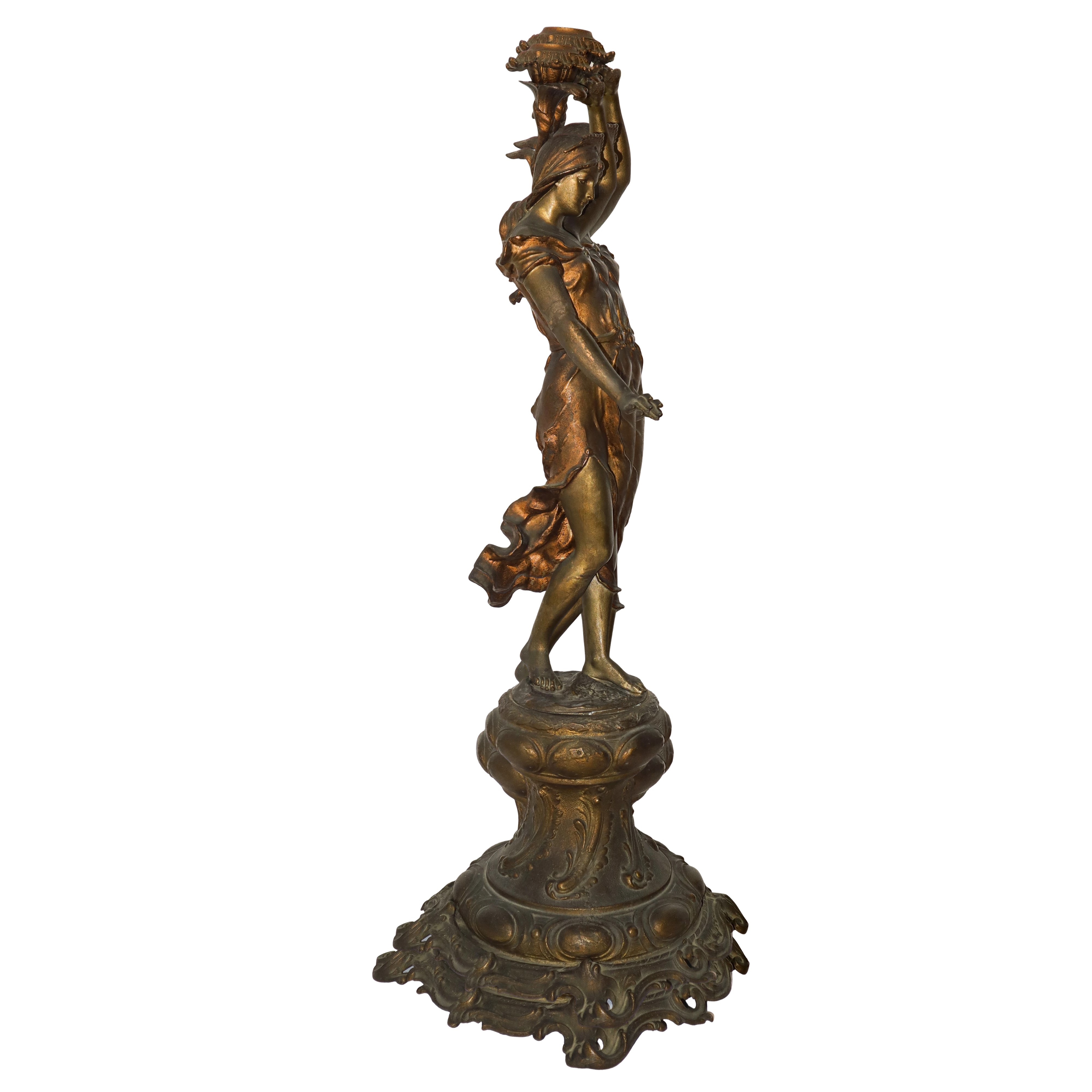Bronze female candle holder sculpture with pedestal, late 19th century