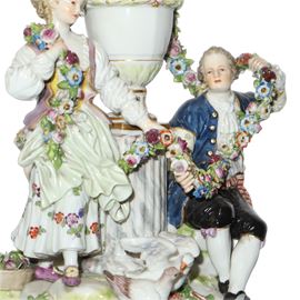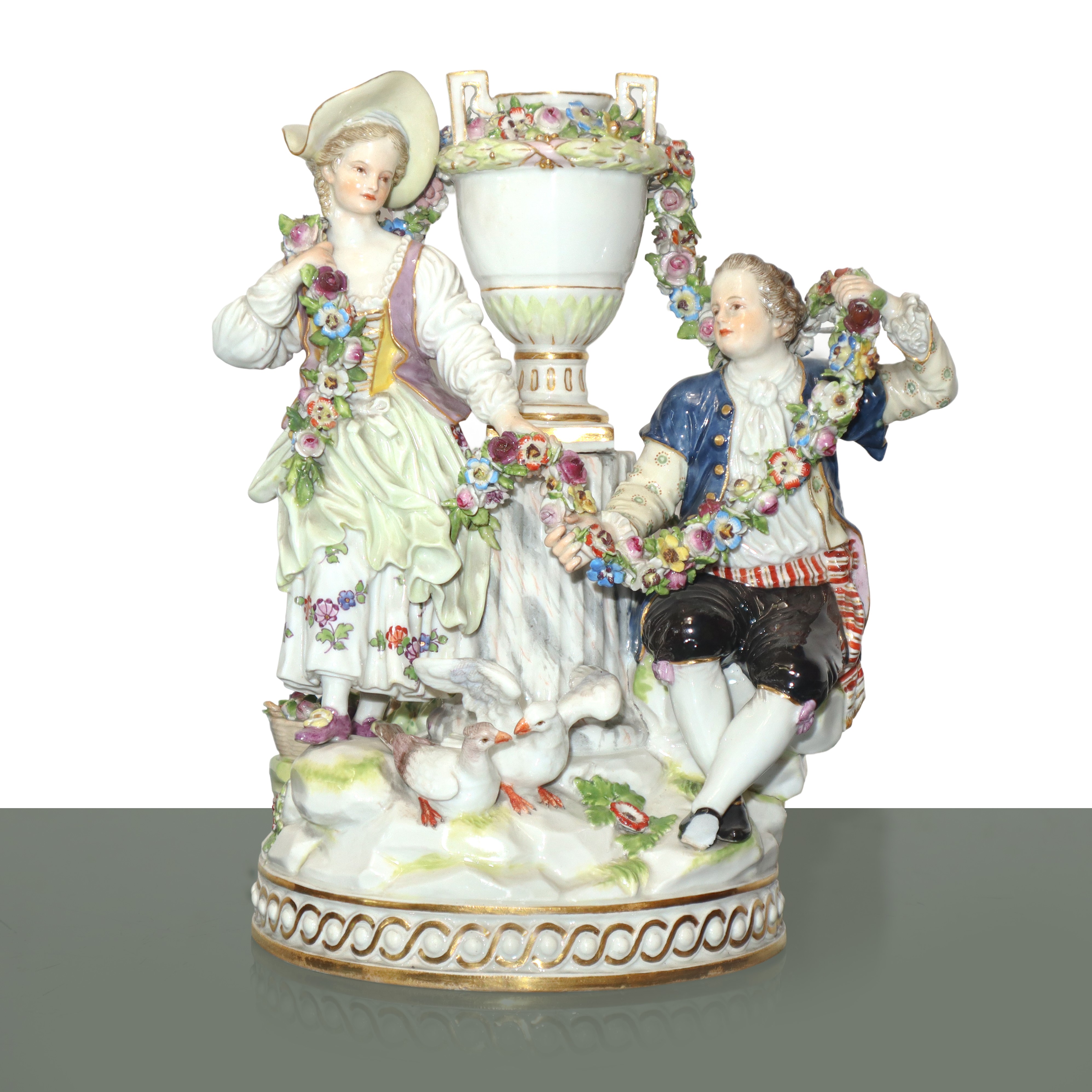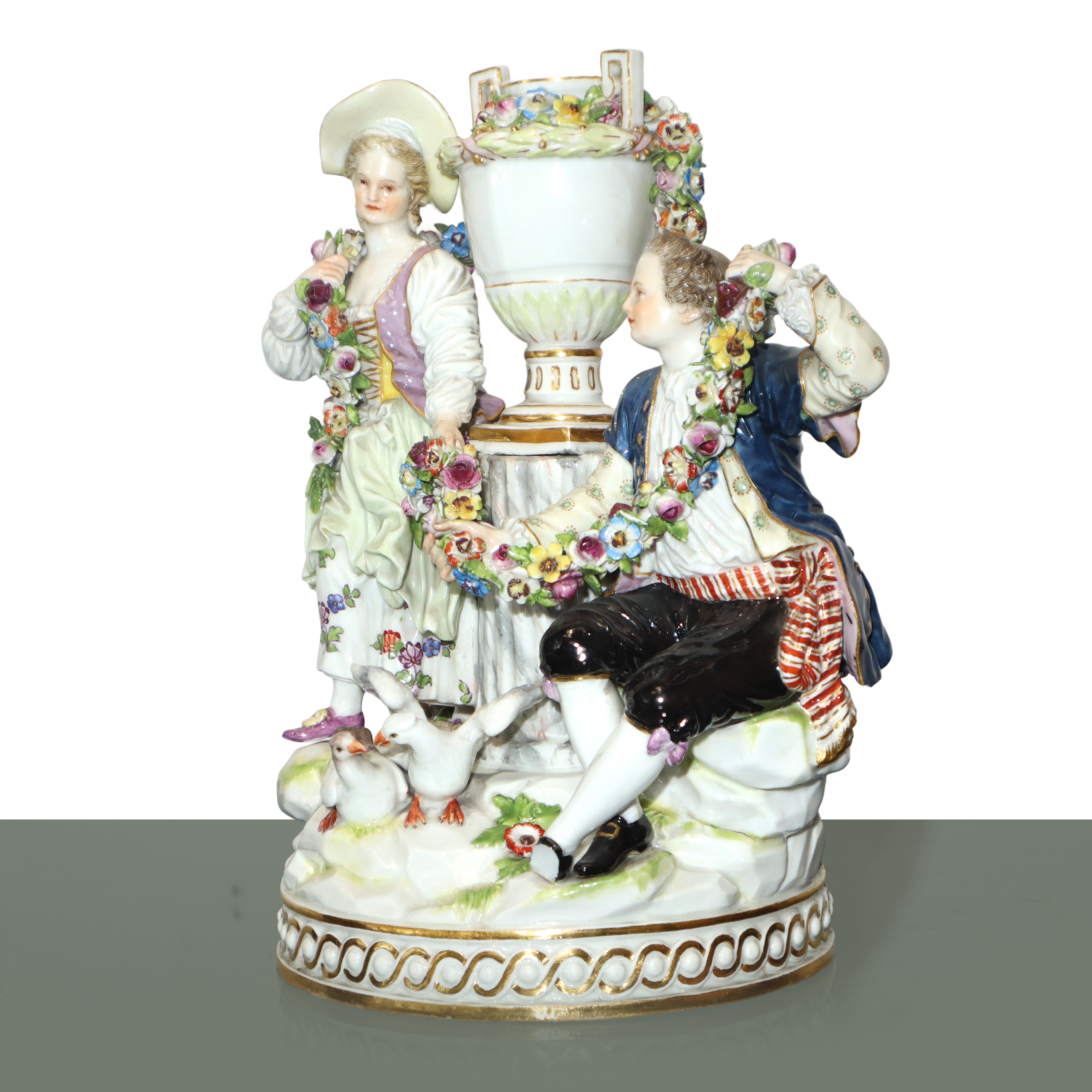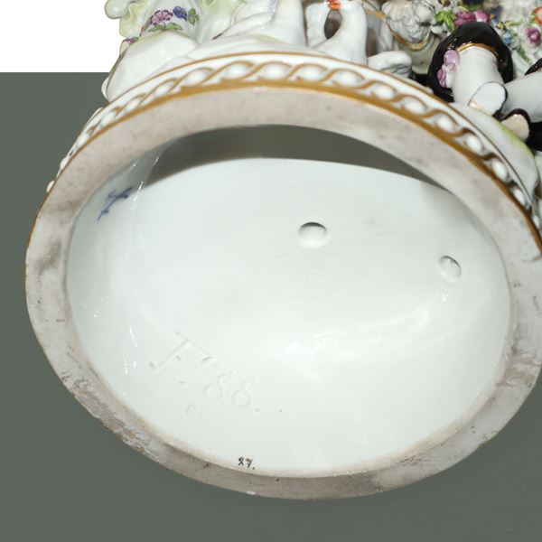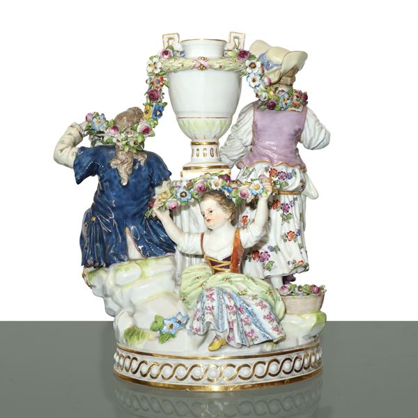 Allegory of Love with Garlands of Flowers, polychrome porcelain sculpture, second half of the 19th century