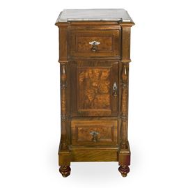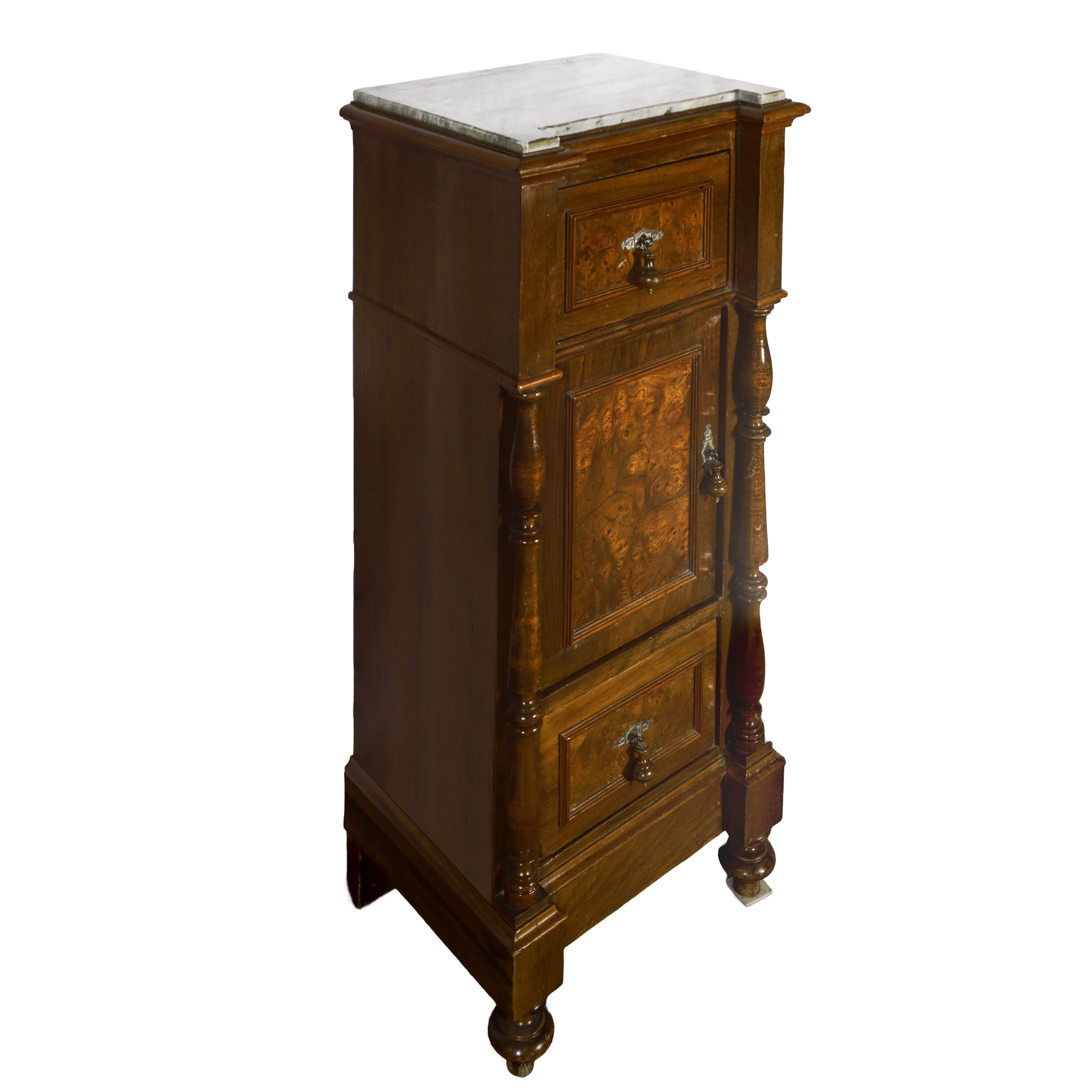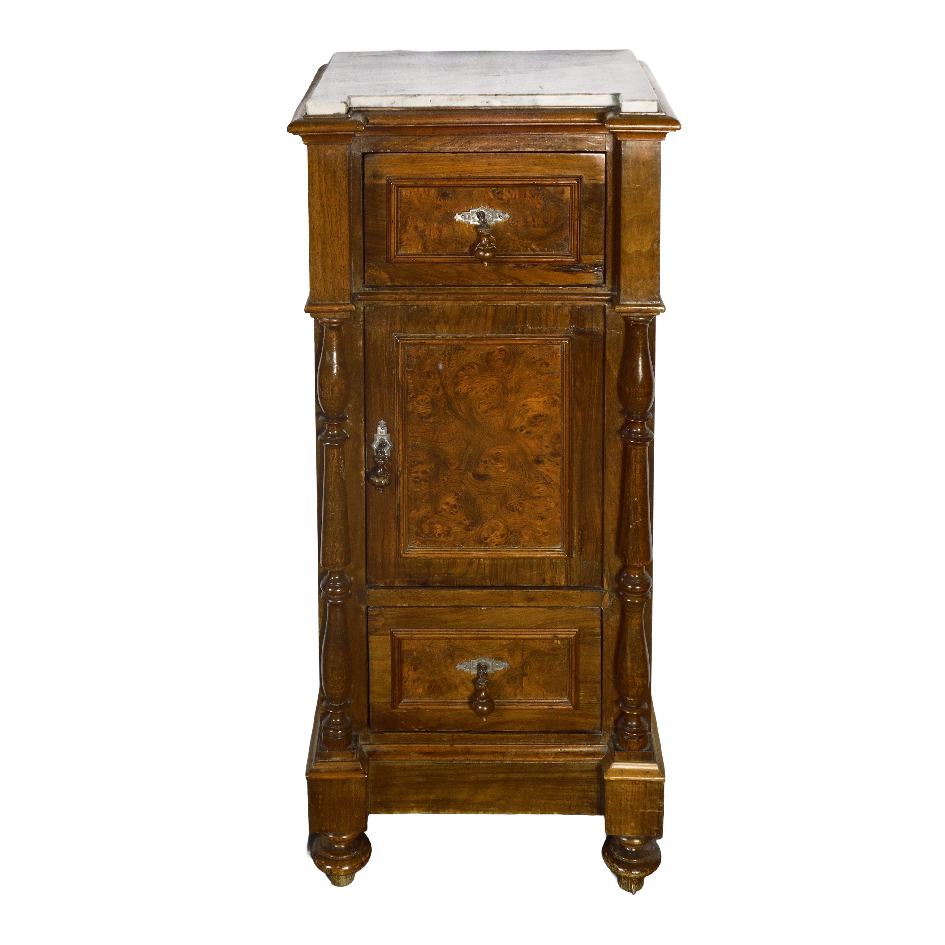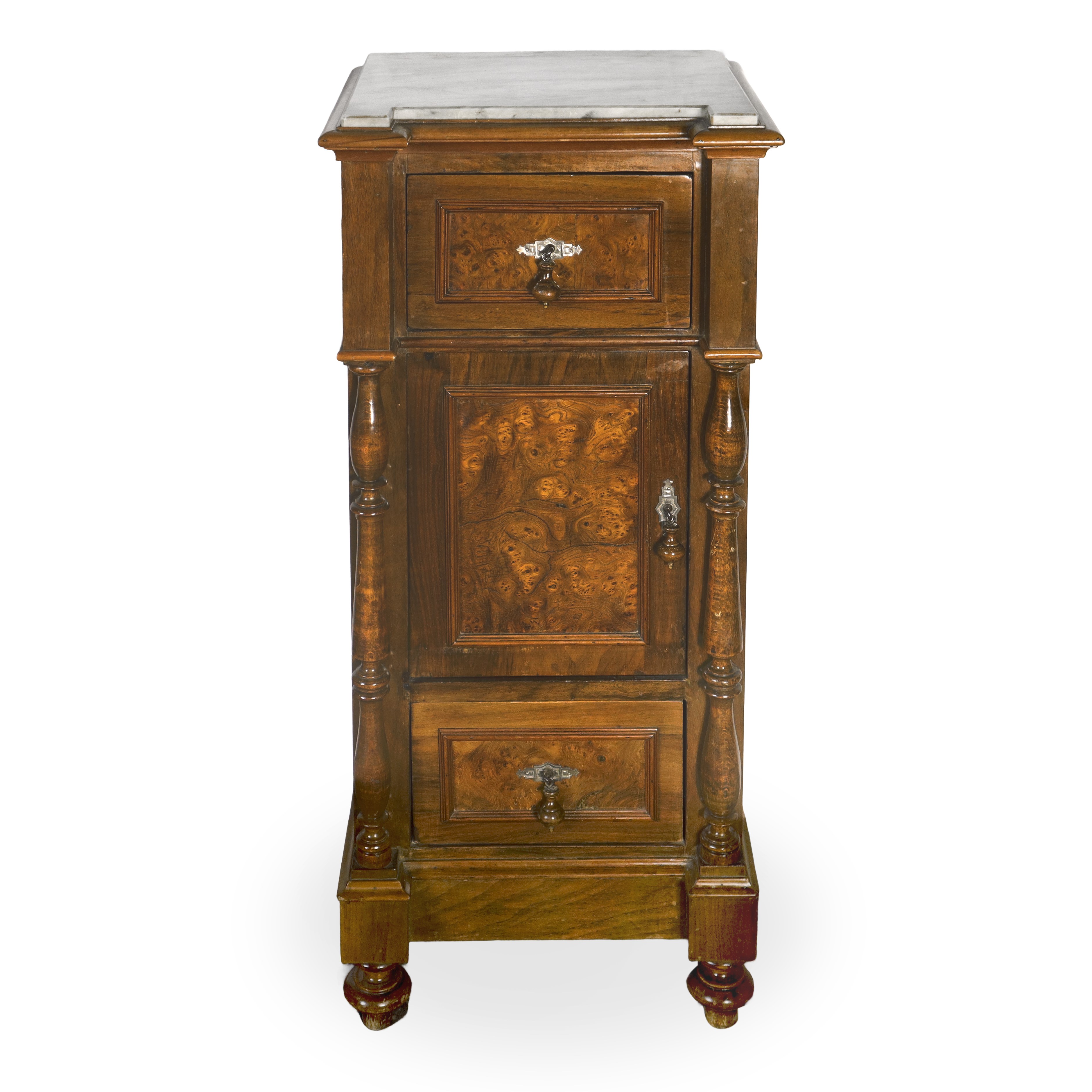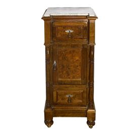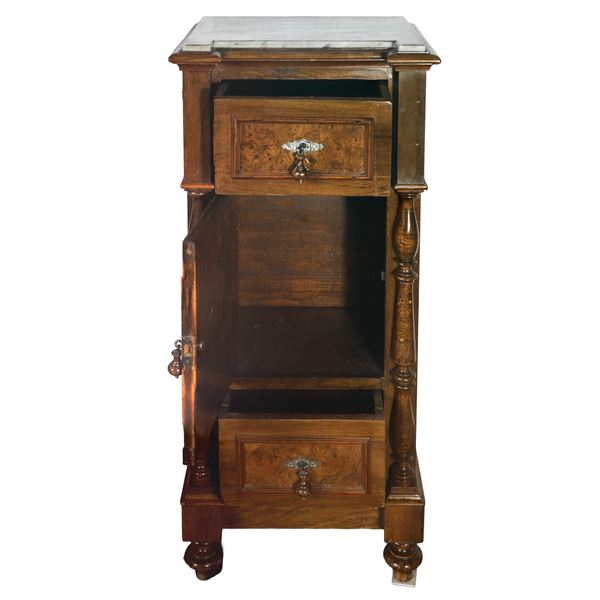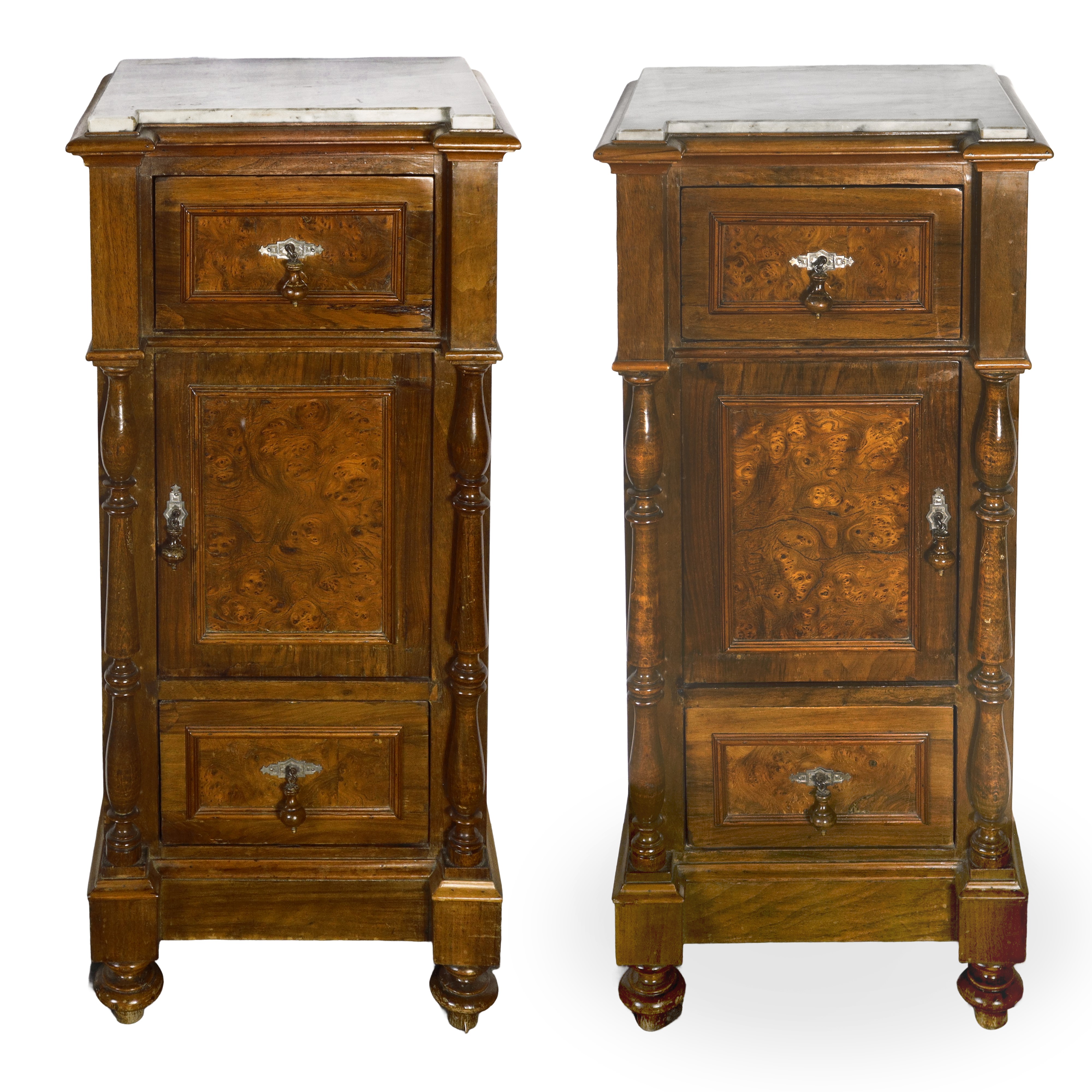 Pair of walnut burl bedside tables