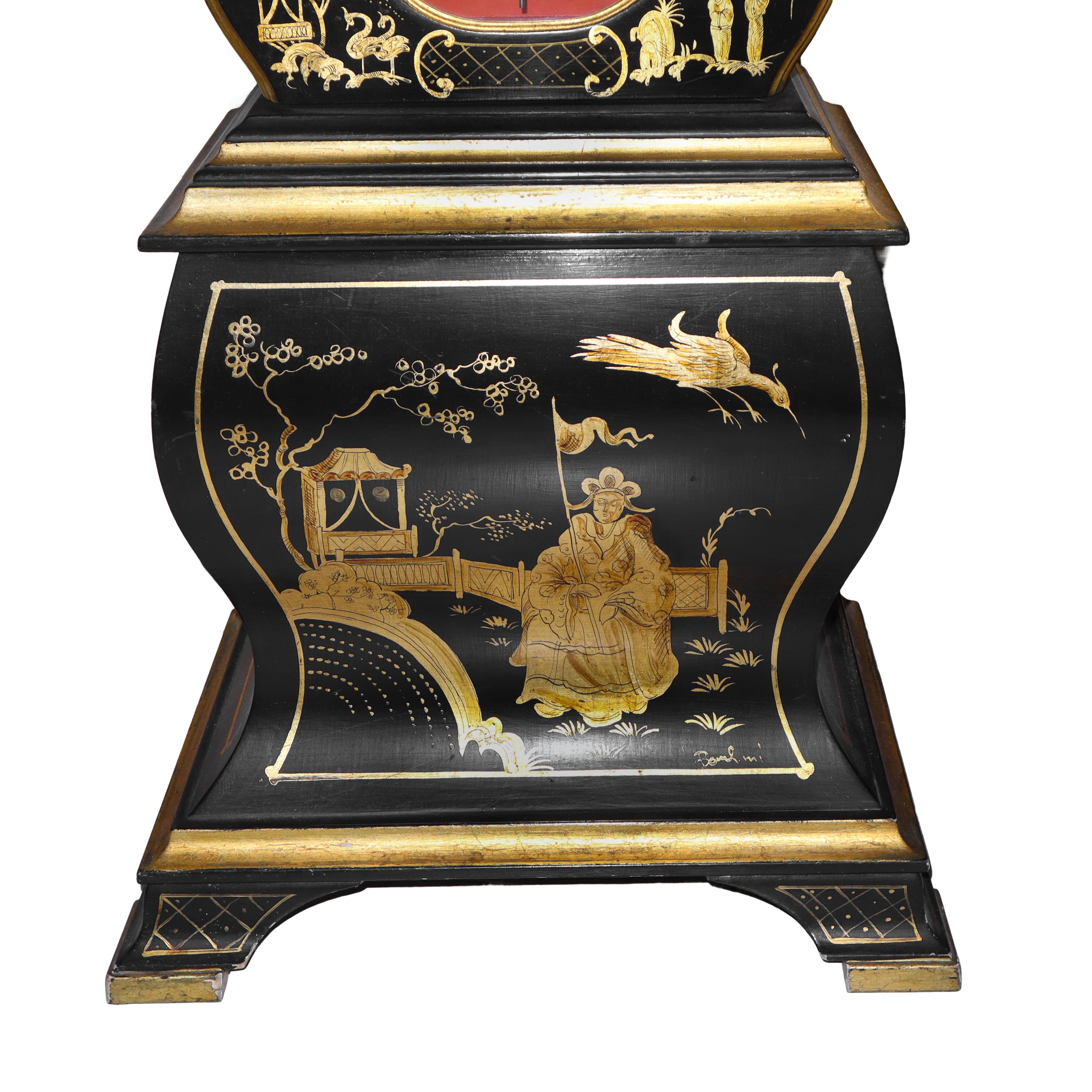 Pendulum clock with painted oriental decorative motifs