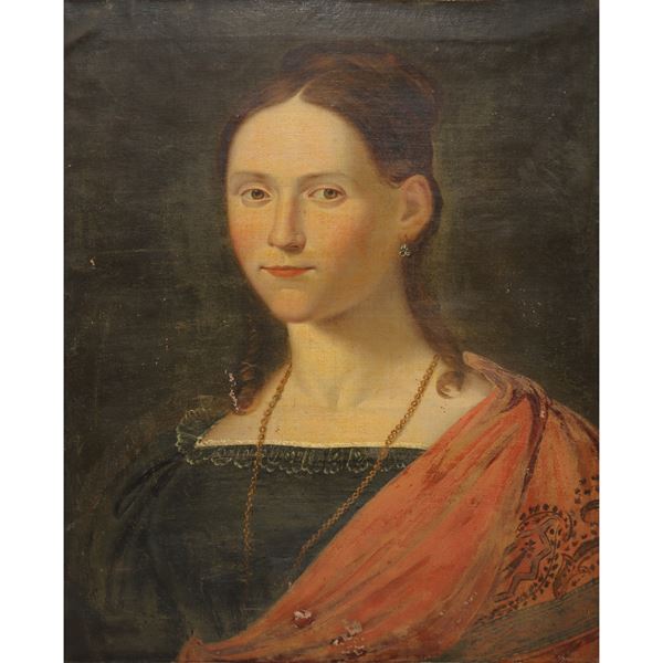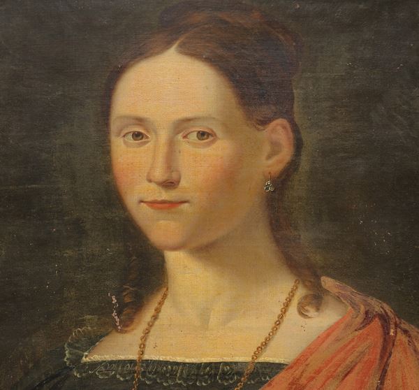 Portrait of a woman in a contemporary gilded half-reed frame, 19th century
