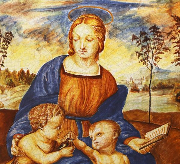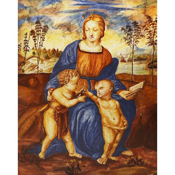 Ceramic plaque depicting the Madonna with Jesus and St. John the Baptist