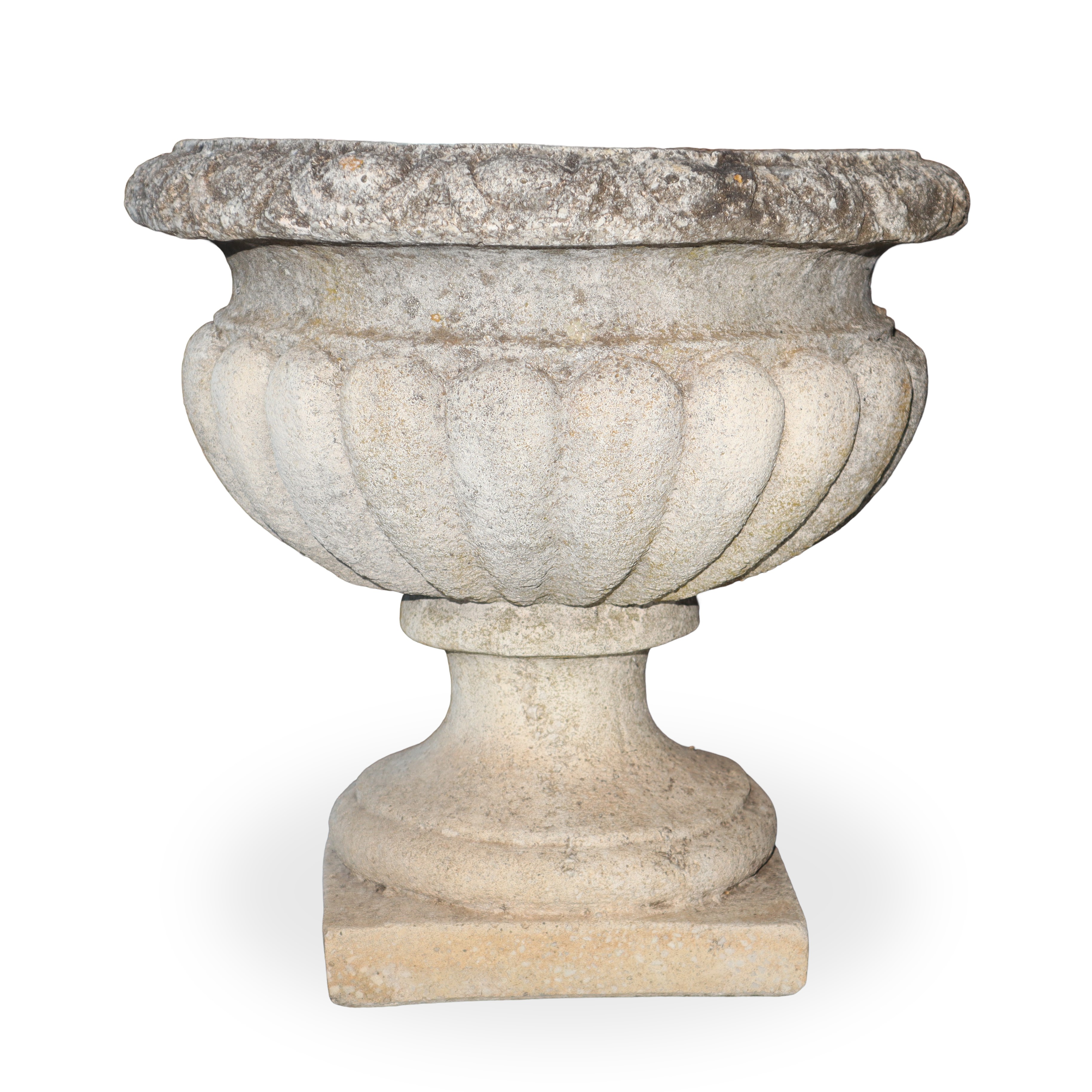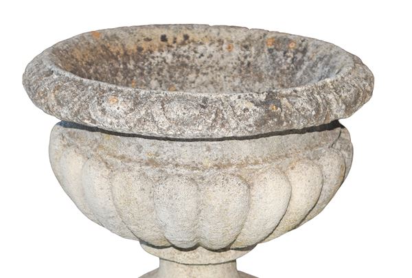 Small crater-shaped cement mortar vase