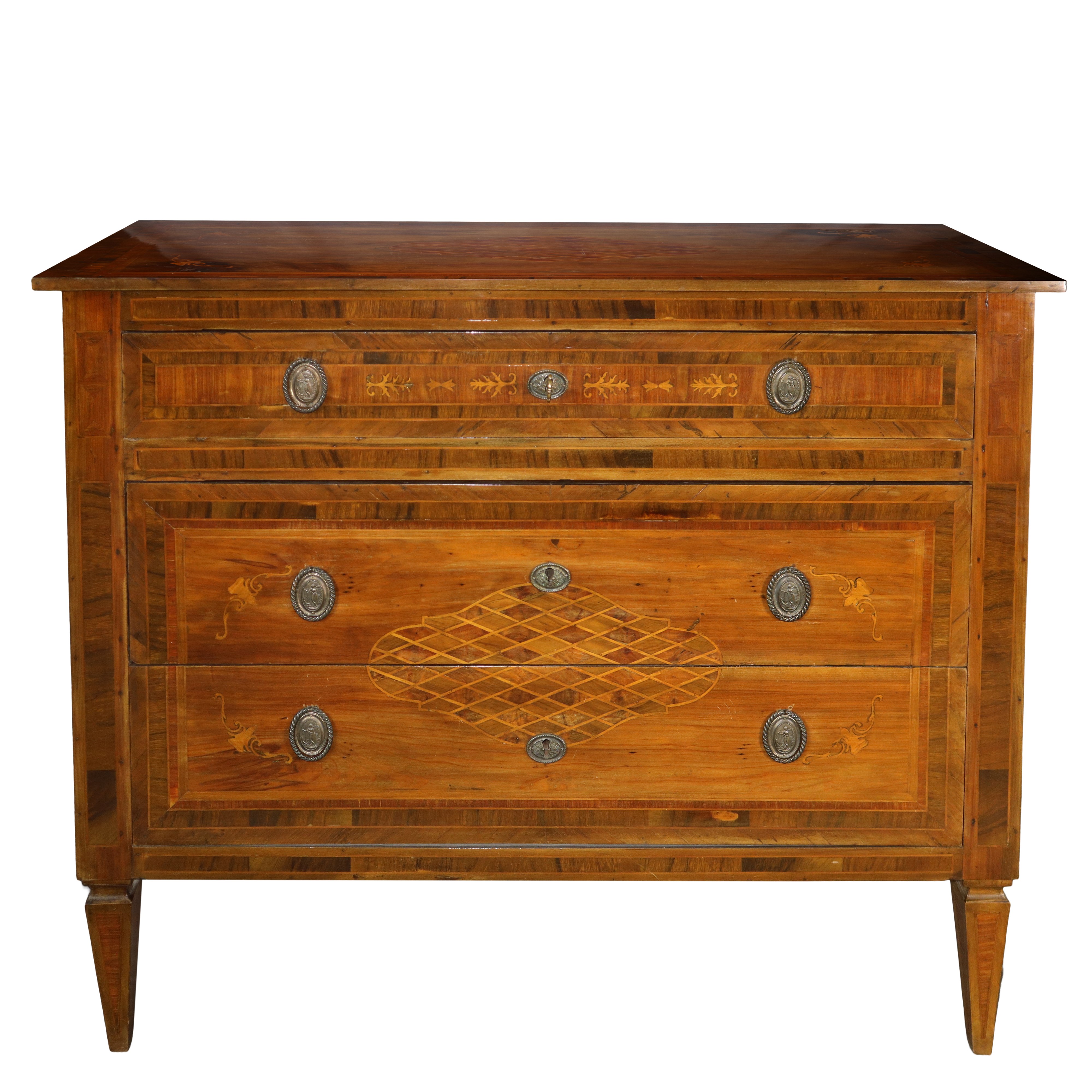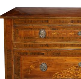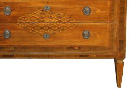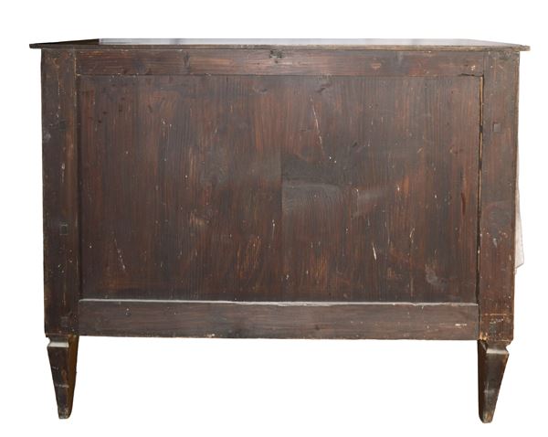 Three-drawer chest of drawers in Maria Theresa style with truncated pyramid feet