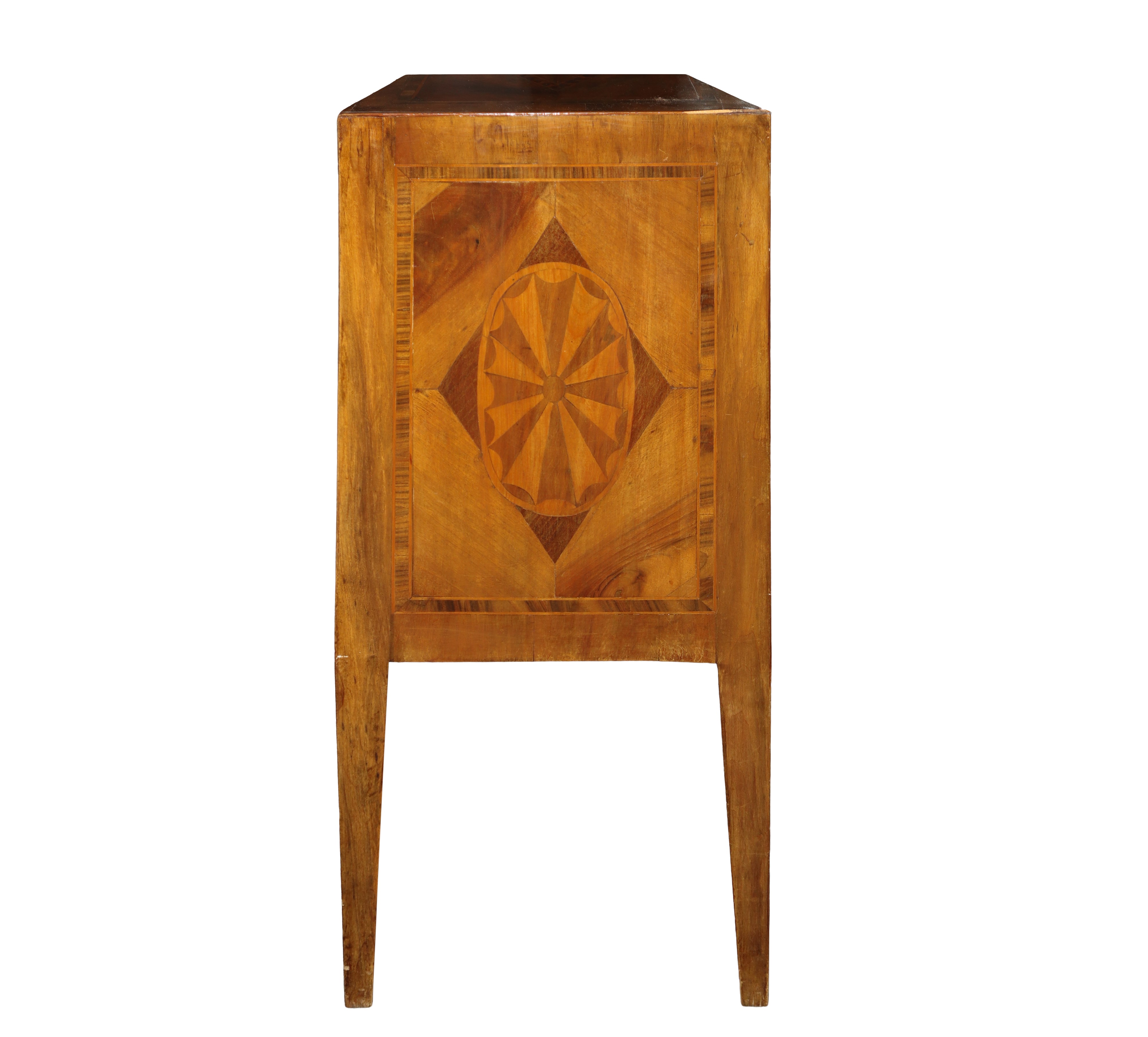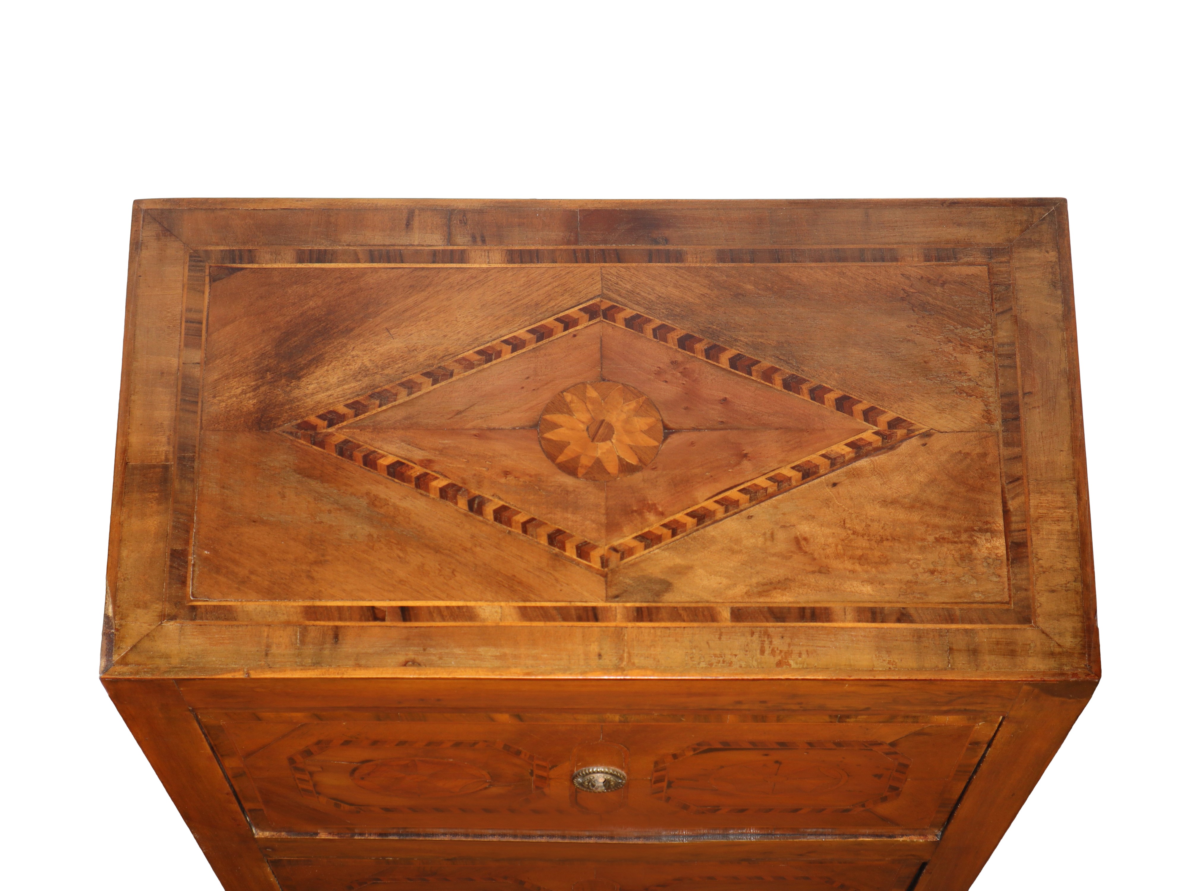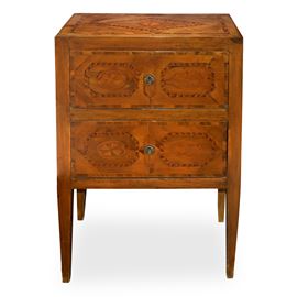Two-drawer bedside table with truncated pyramidal feet in walnut wood