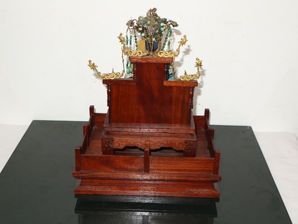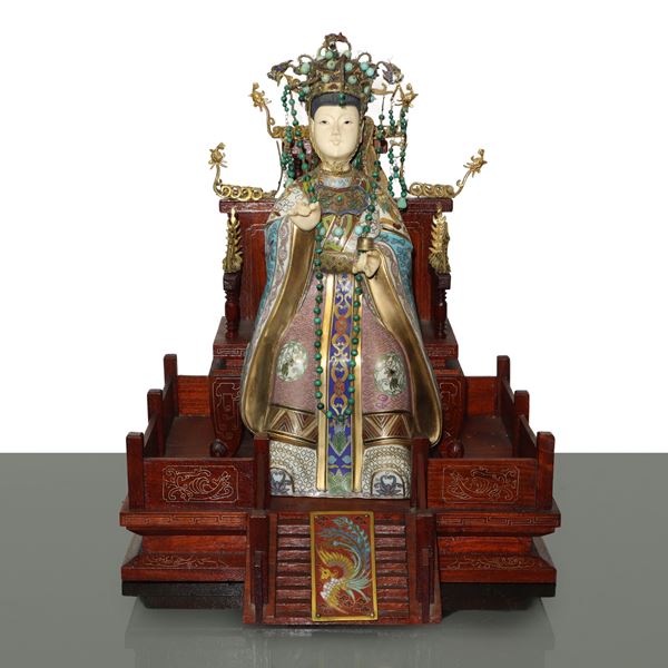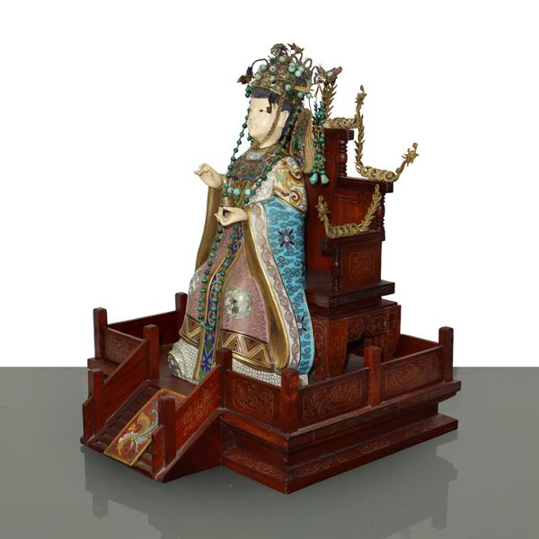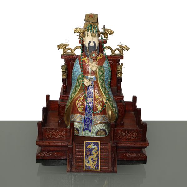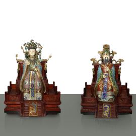 Chinese Emperor and Empress, pair of sculptures on wooden base