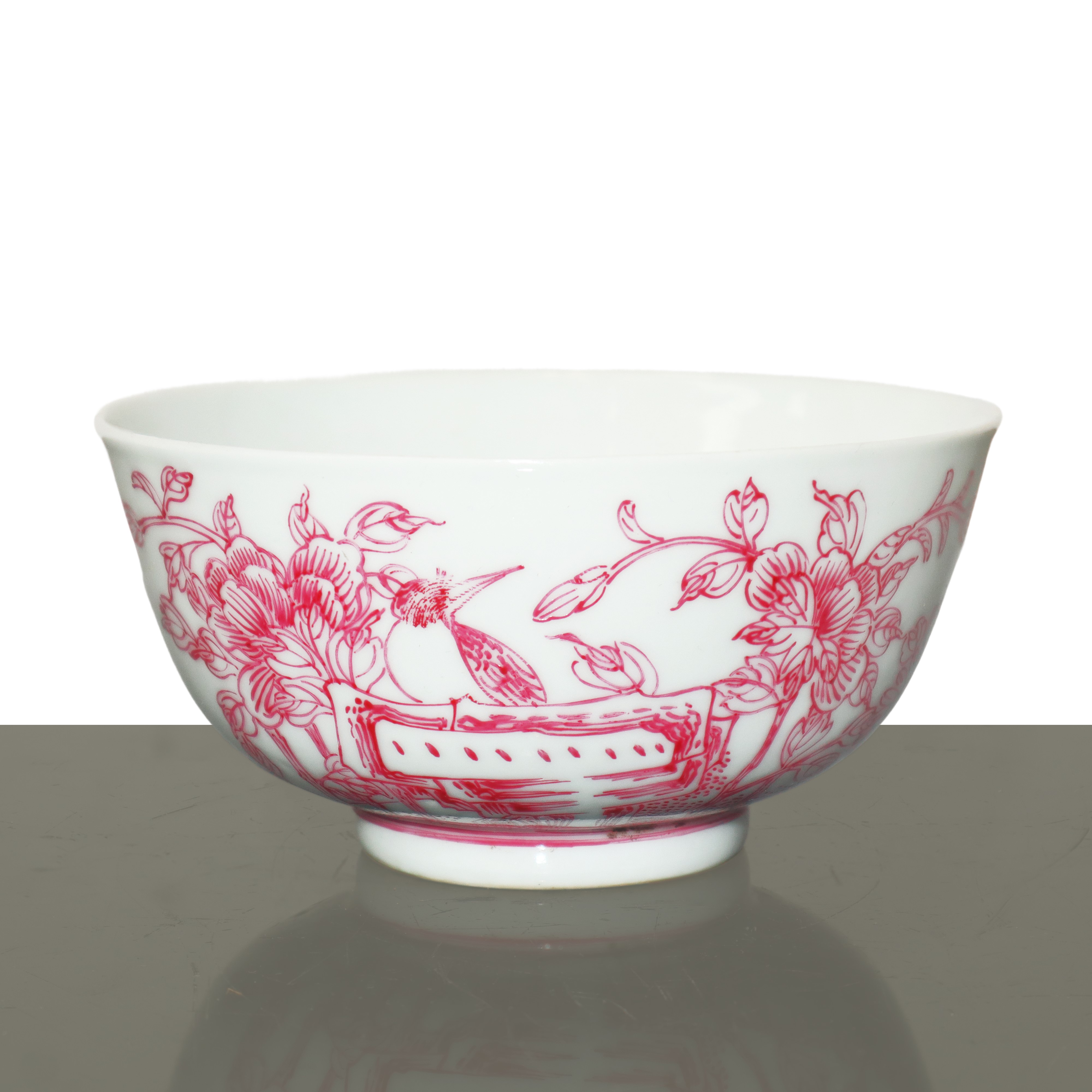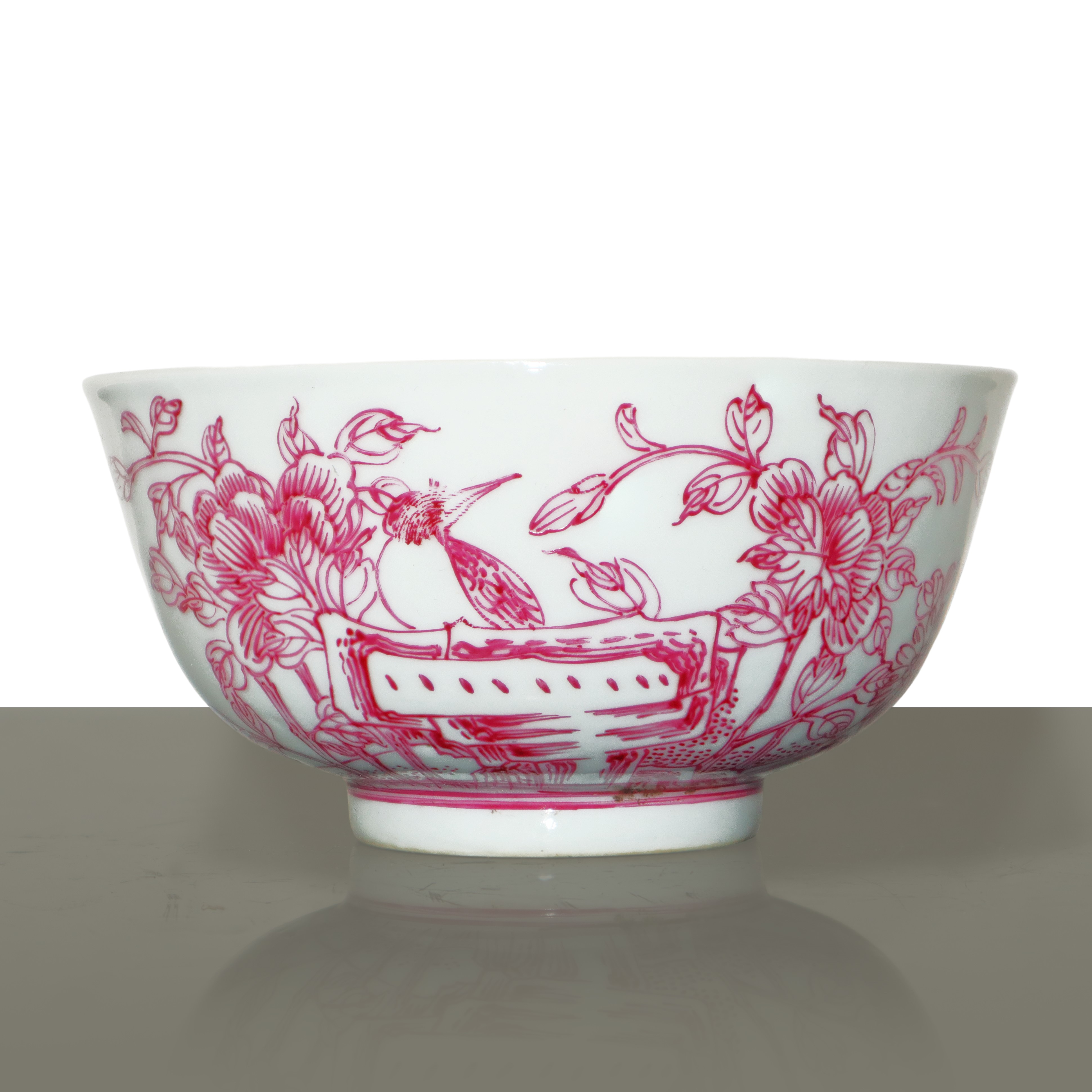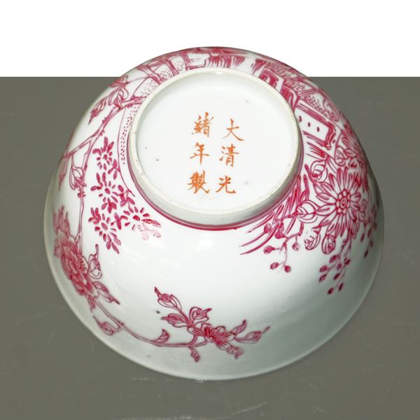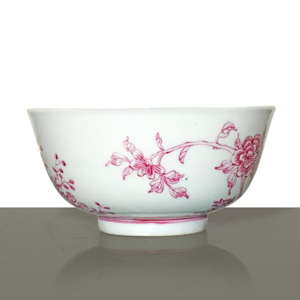 Chinese porcelain bowl with magenta floral decorations, Qing Dynasty 19th century