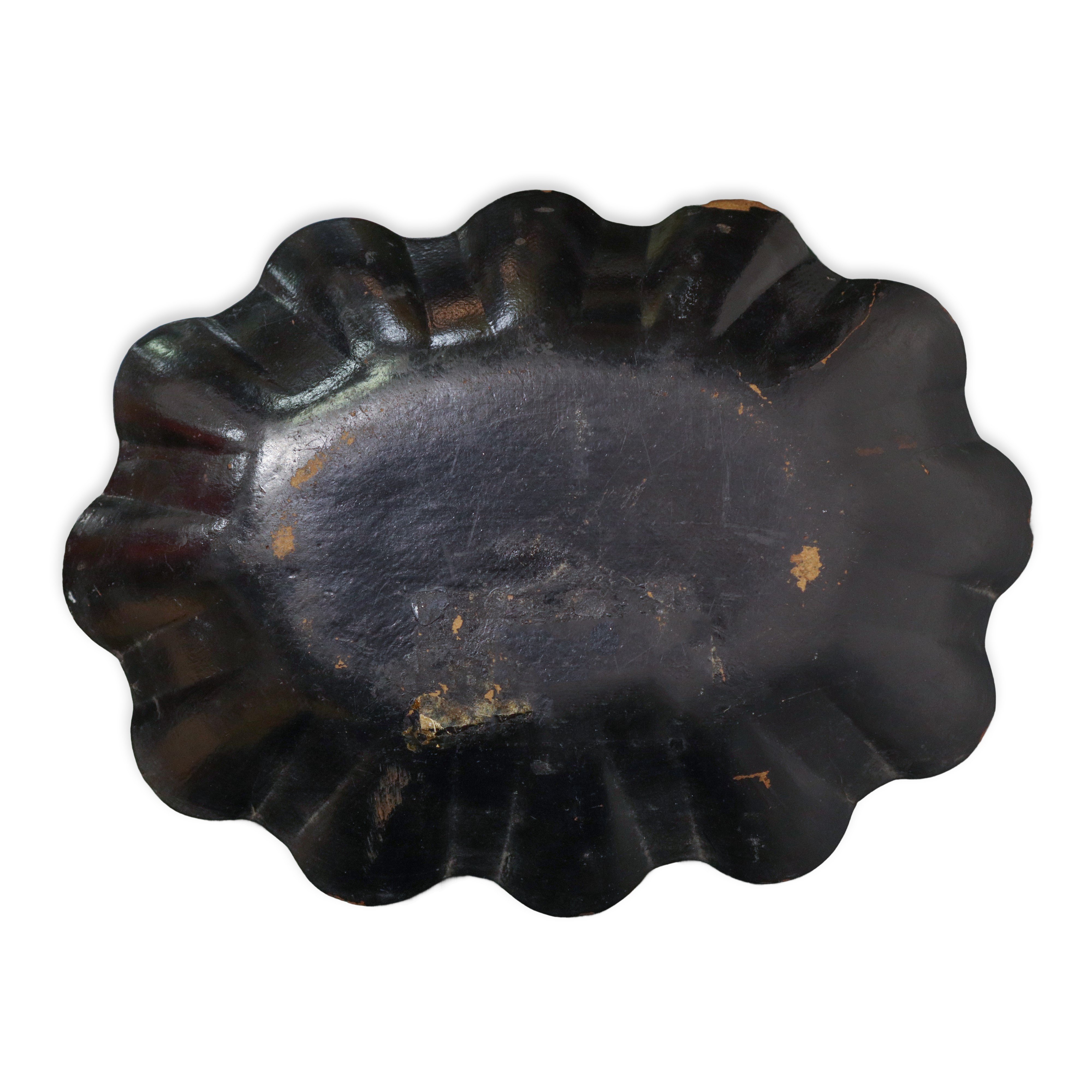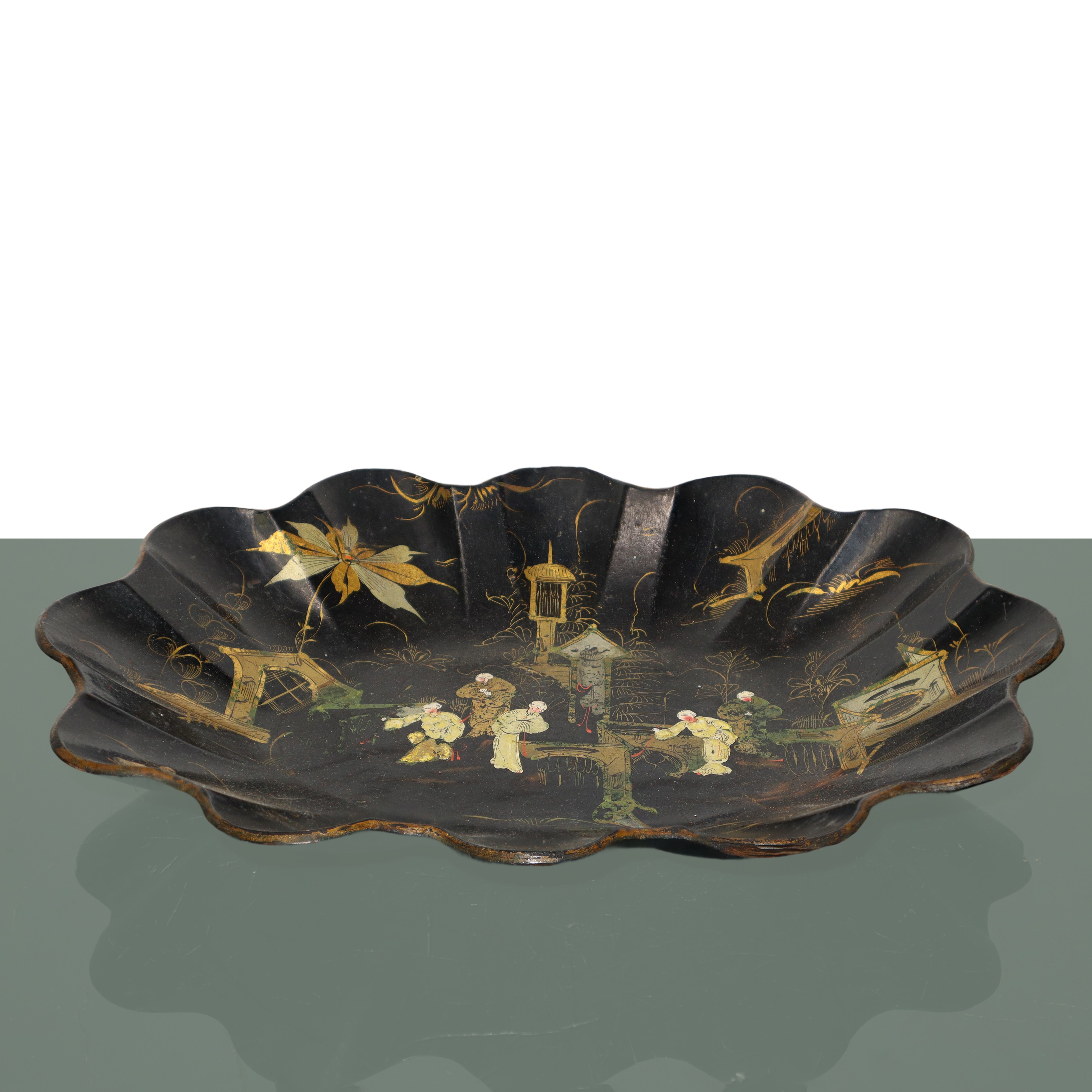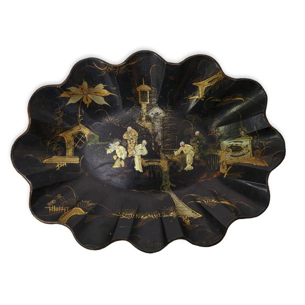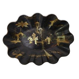 Chinese tray in black lacquered papier-mâché with gold and silver figures, France 19th century