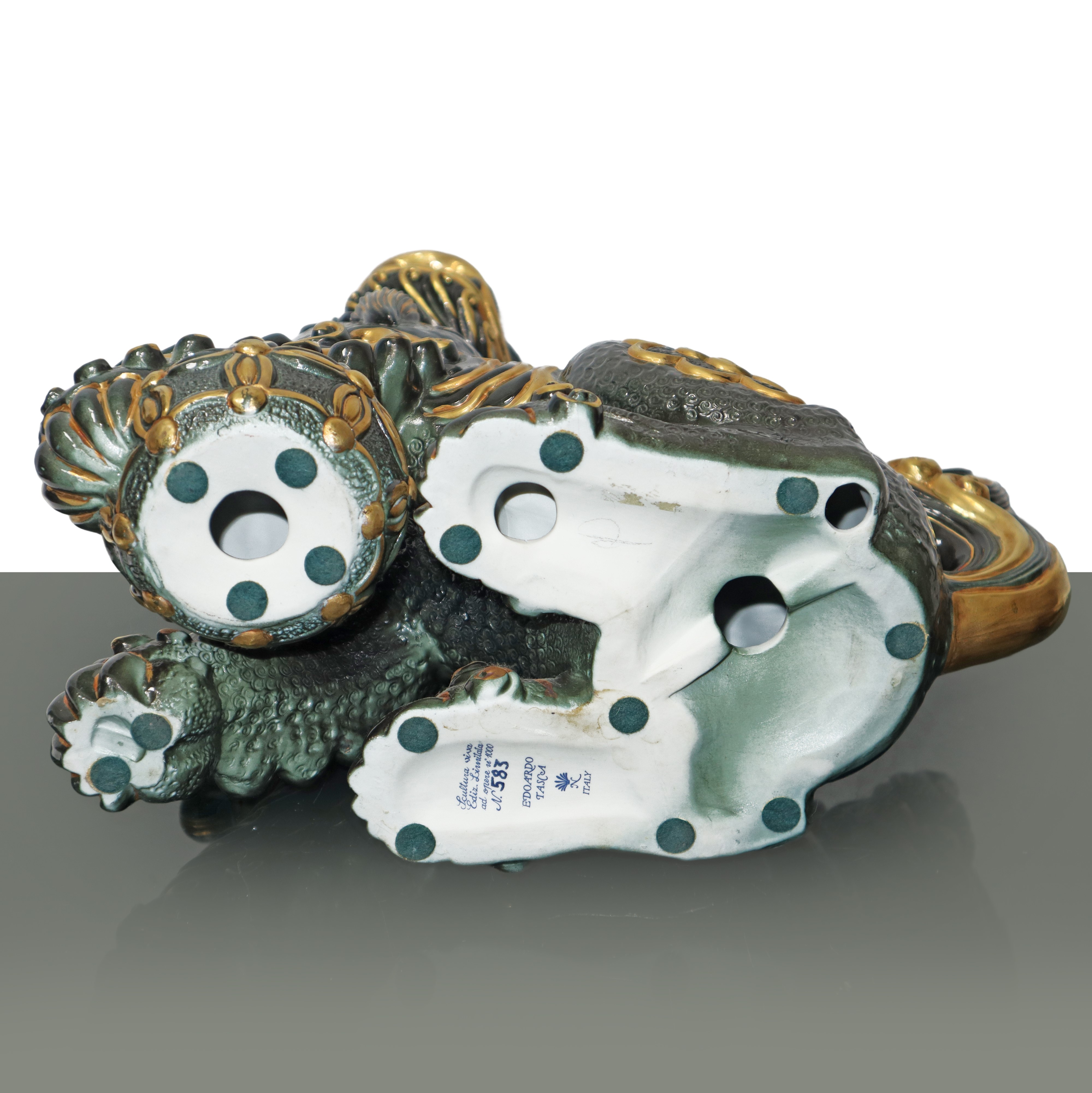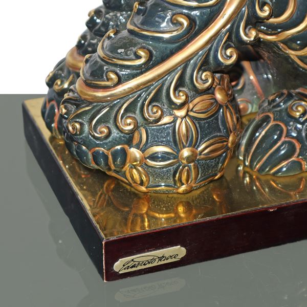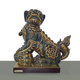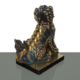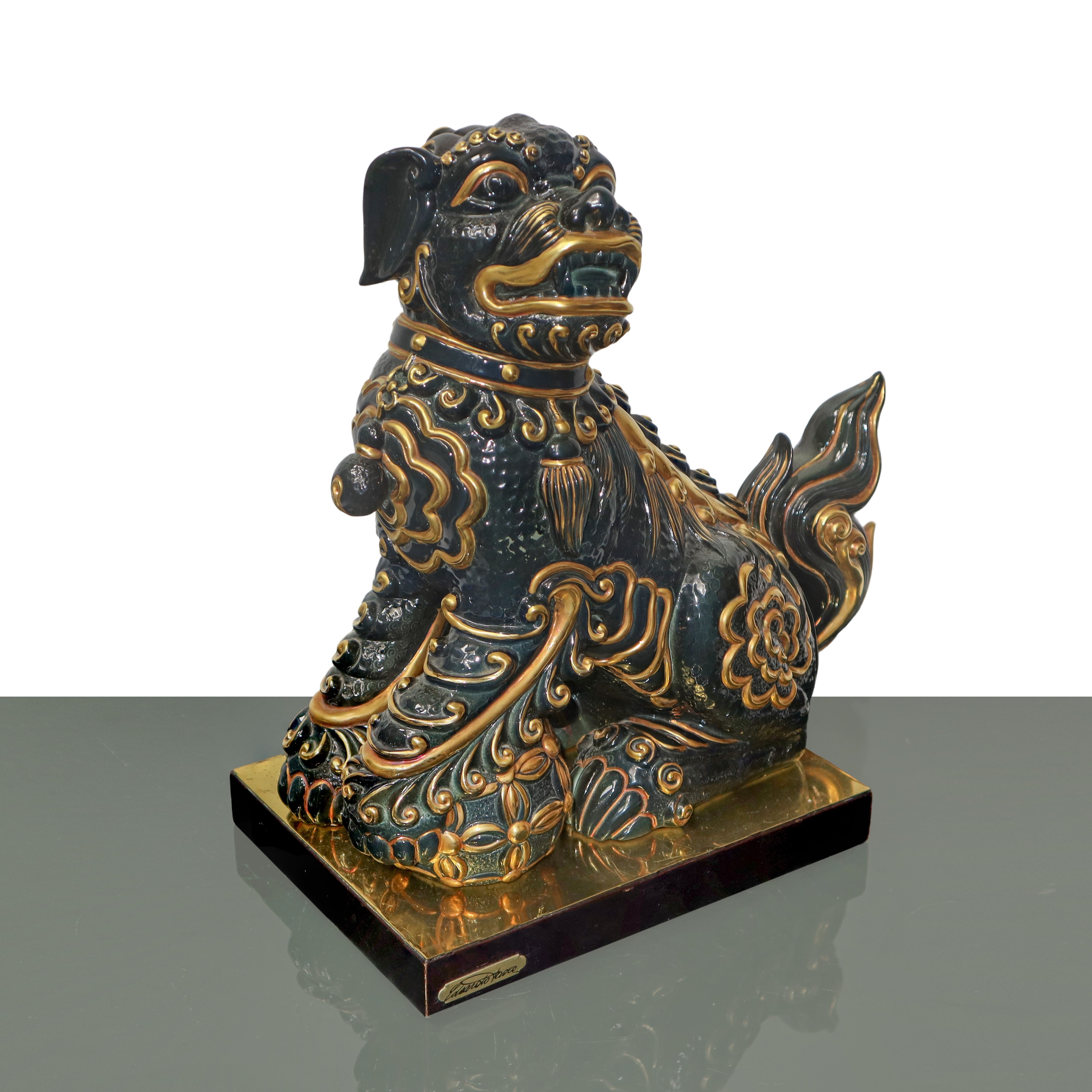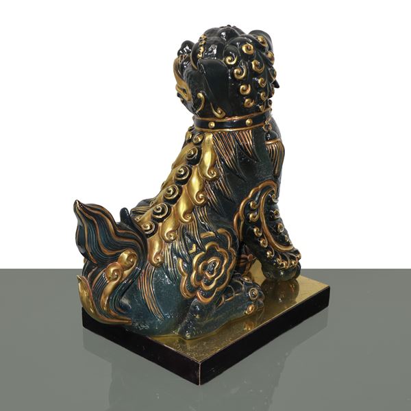 Foo dog in black majolica with gold details