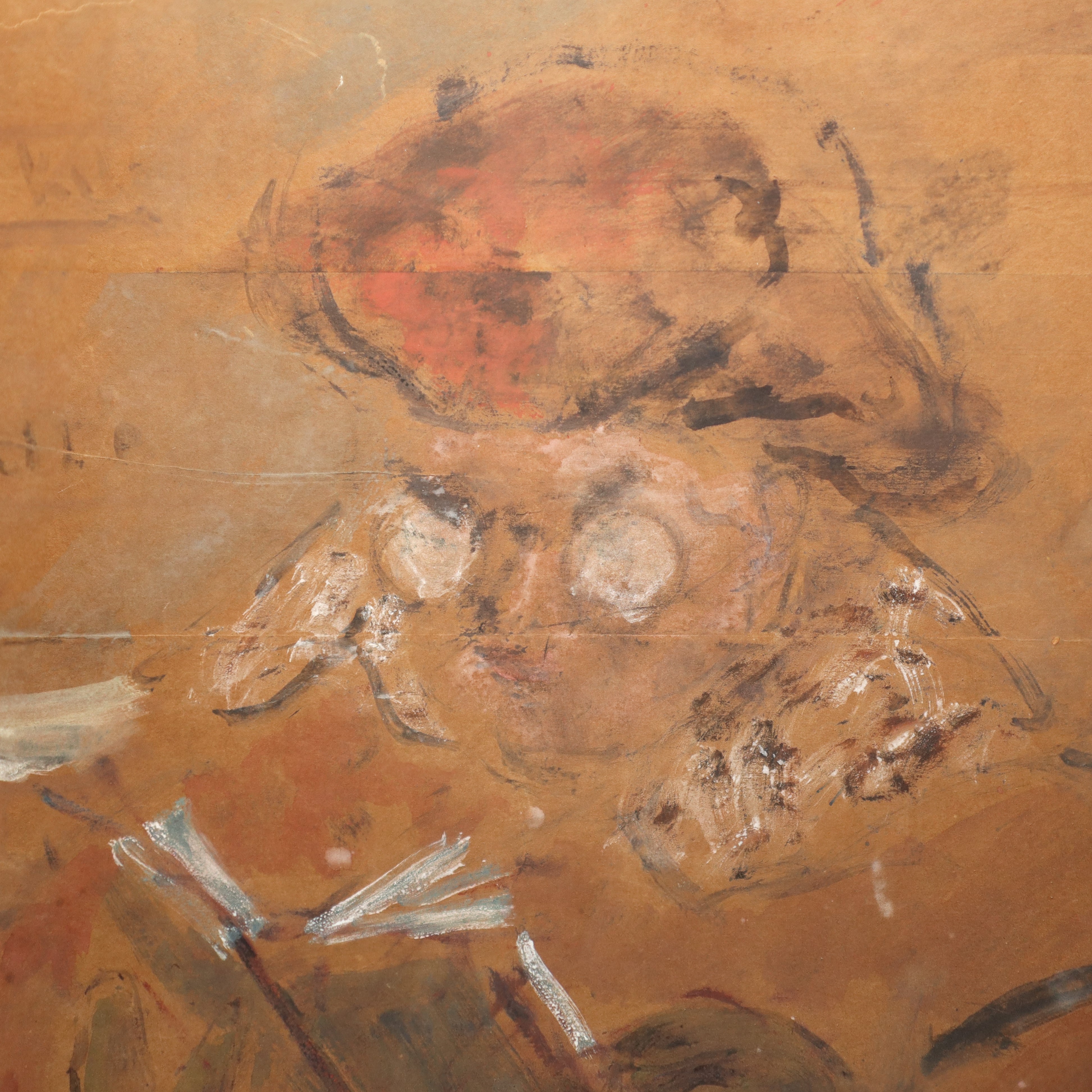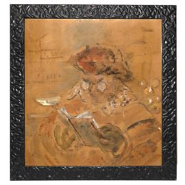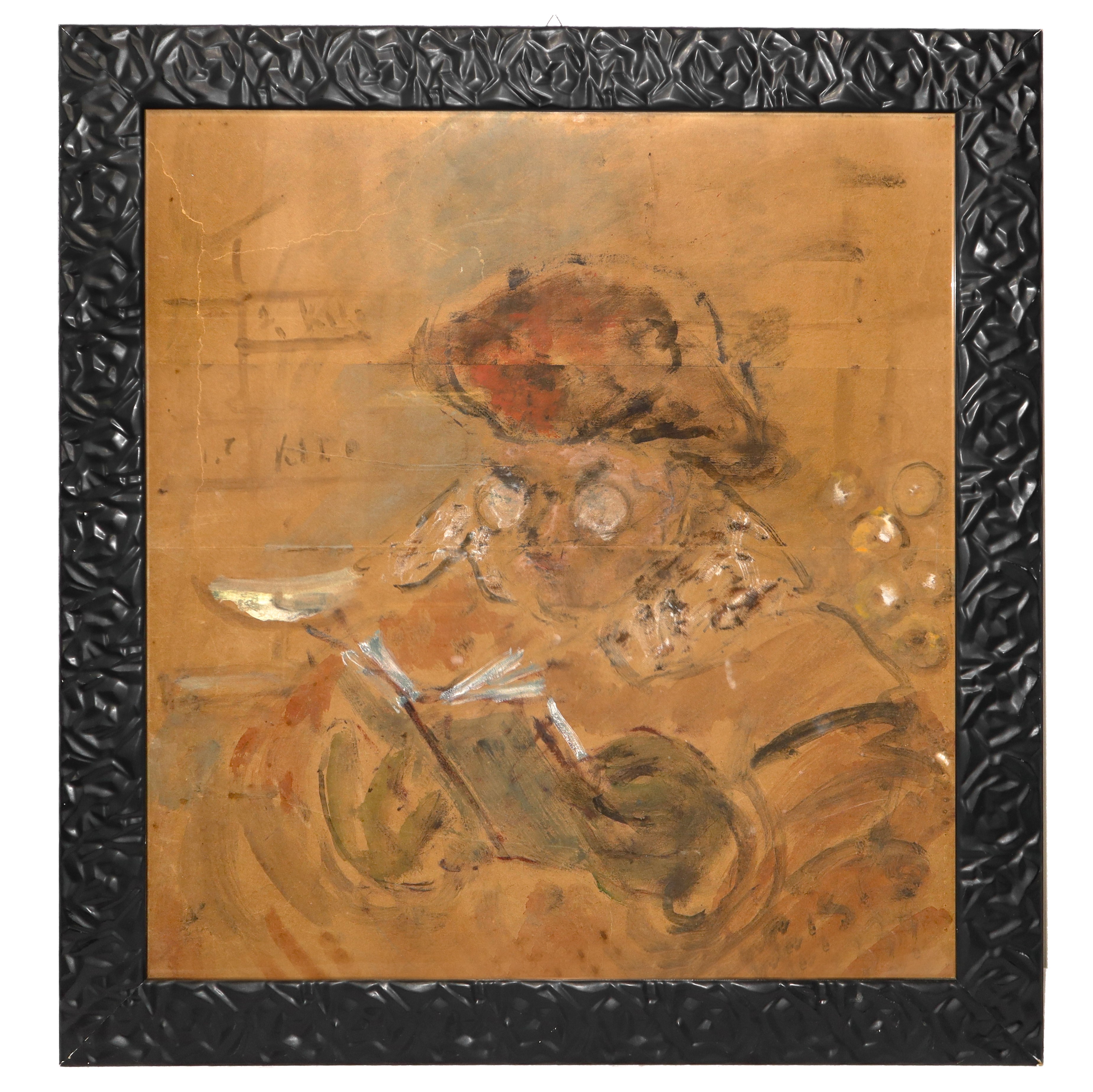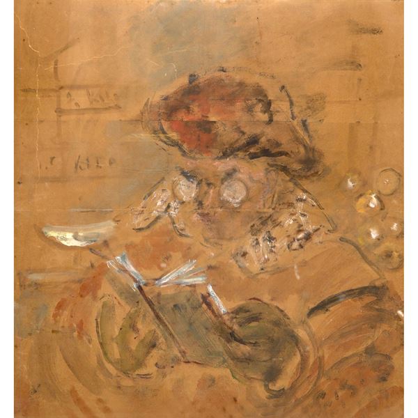 Filippo de Pisis, a painter and poet of considerable artistic and cultural importance, was born in Ferrara in 1896 and died in Milan in 1956. Throughout his creative career, he devoted himself equally to painting, poetry, and writing, establishing himself as one of the most significant cultural figures of the first half of the 20th century. Our painting, dated 1939, dates to the period of his return to Italy after a long stay in Paris (1925–1939); by this time, the artist had already developed the characteristic rapid, sparse style that would characterize his entire output. In our thoughtful portrait of a reader, moreover, the aspiration to complete essentiality is evident, here explored through bold brushstrokes from which the barely sketched forms emerge thanks to simple, carefully selected touches of white. An ephemeral and poetic image.
