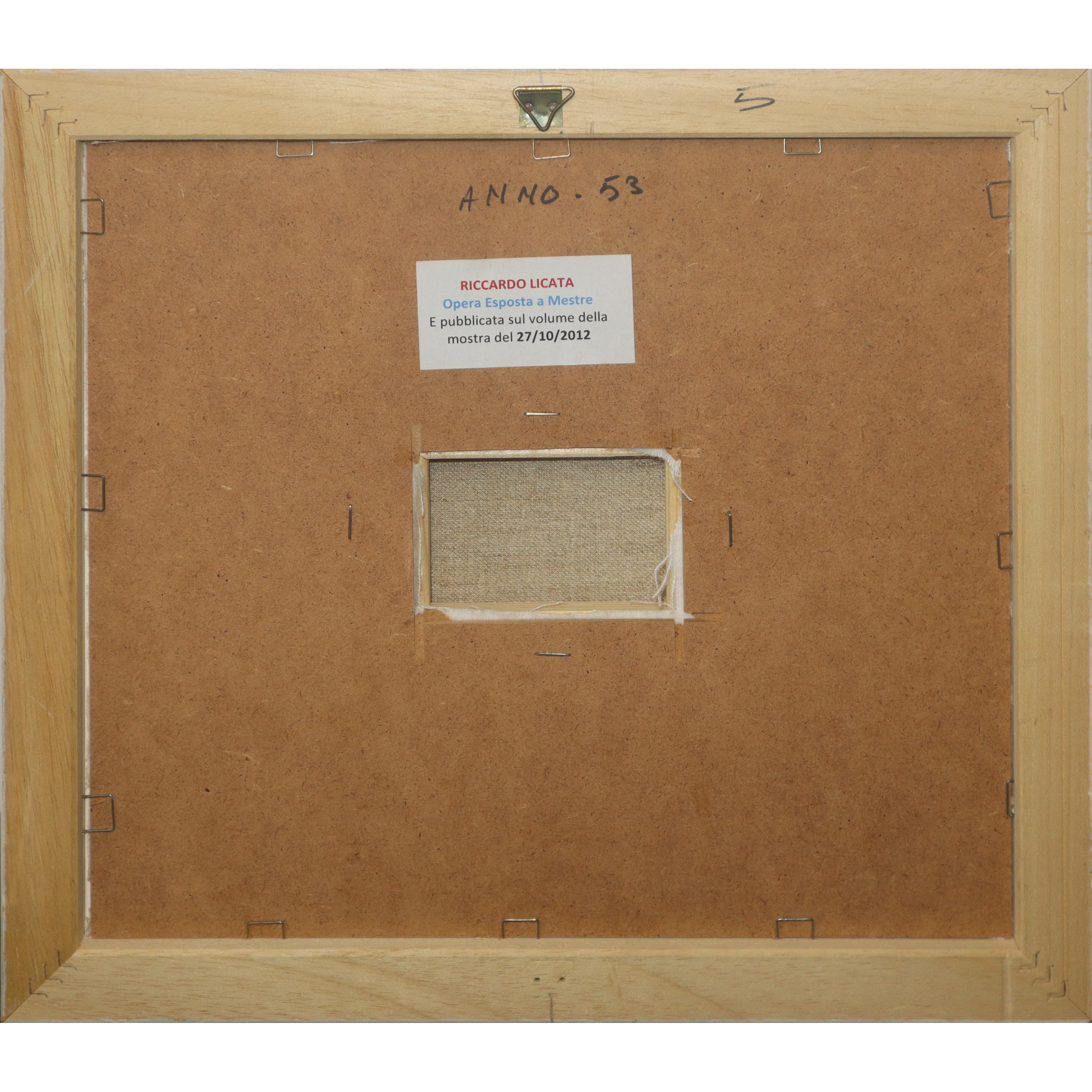 Signed and dated lower center. Certificate of authenticity by the artist on the photograph and certificate of authenticity by the Orler Gallery in Favaro Veneto. The work was exhibited at the Orler Gallery in Mestre from October 27, 2012 to November 30, 2012. Published on p. 31 of the volume Riccardo Licata - I quaderni ritrovati with a preface by Carlo Vanoni and a critical text by Carlo Vanoni.