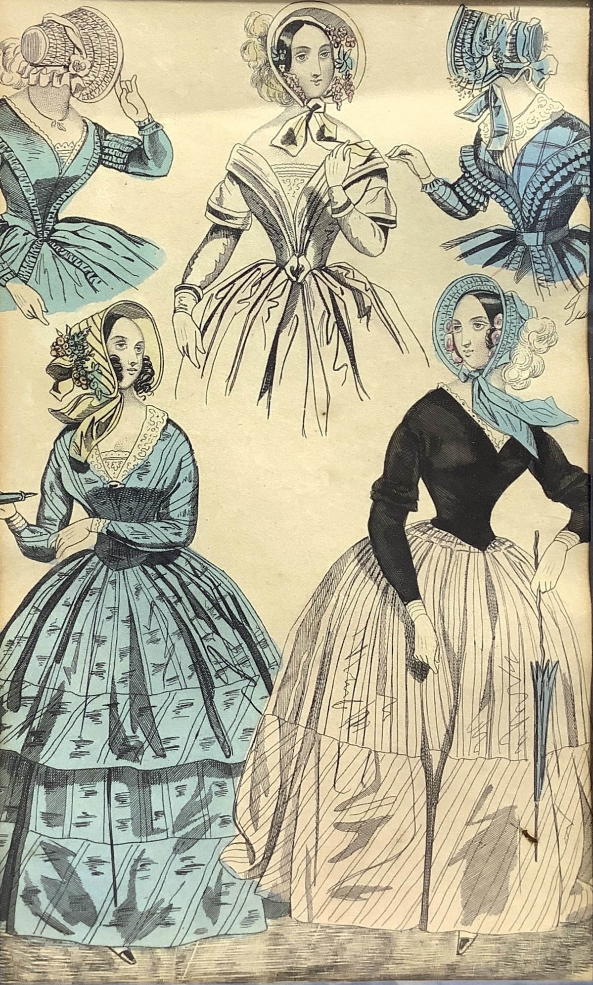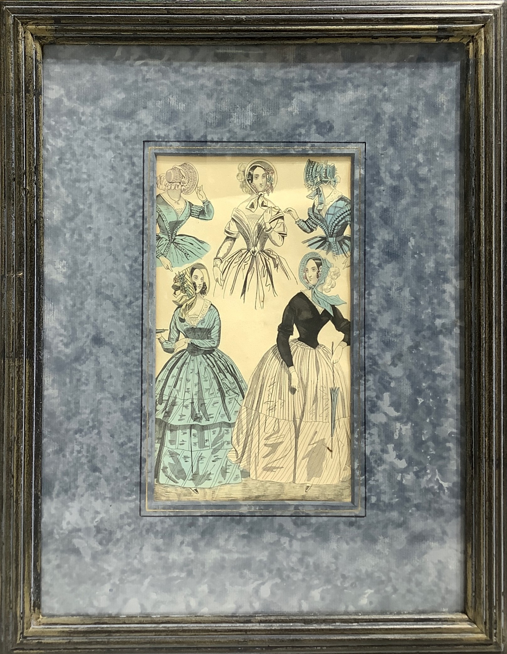 Pair of prints depicting women's fashion clothes and home