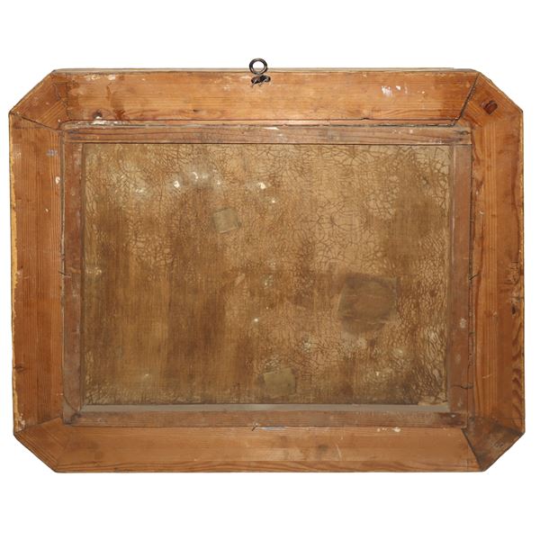 The painting, a well-known episode from the Iliad, is a smaller-format adaptation of a famous painting by Gavin Hamilton, painted between 1760 and 1763. The painter, certainly of the Italian school, must have known the composition through engravings that were in circulation immediately after the completion of the original invention.