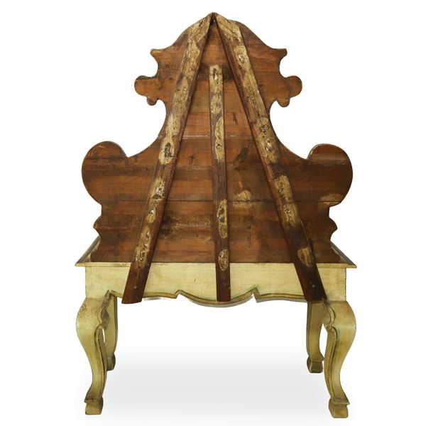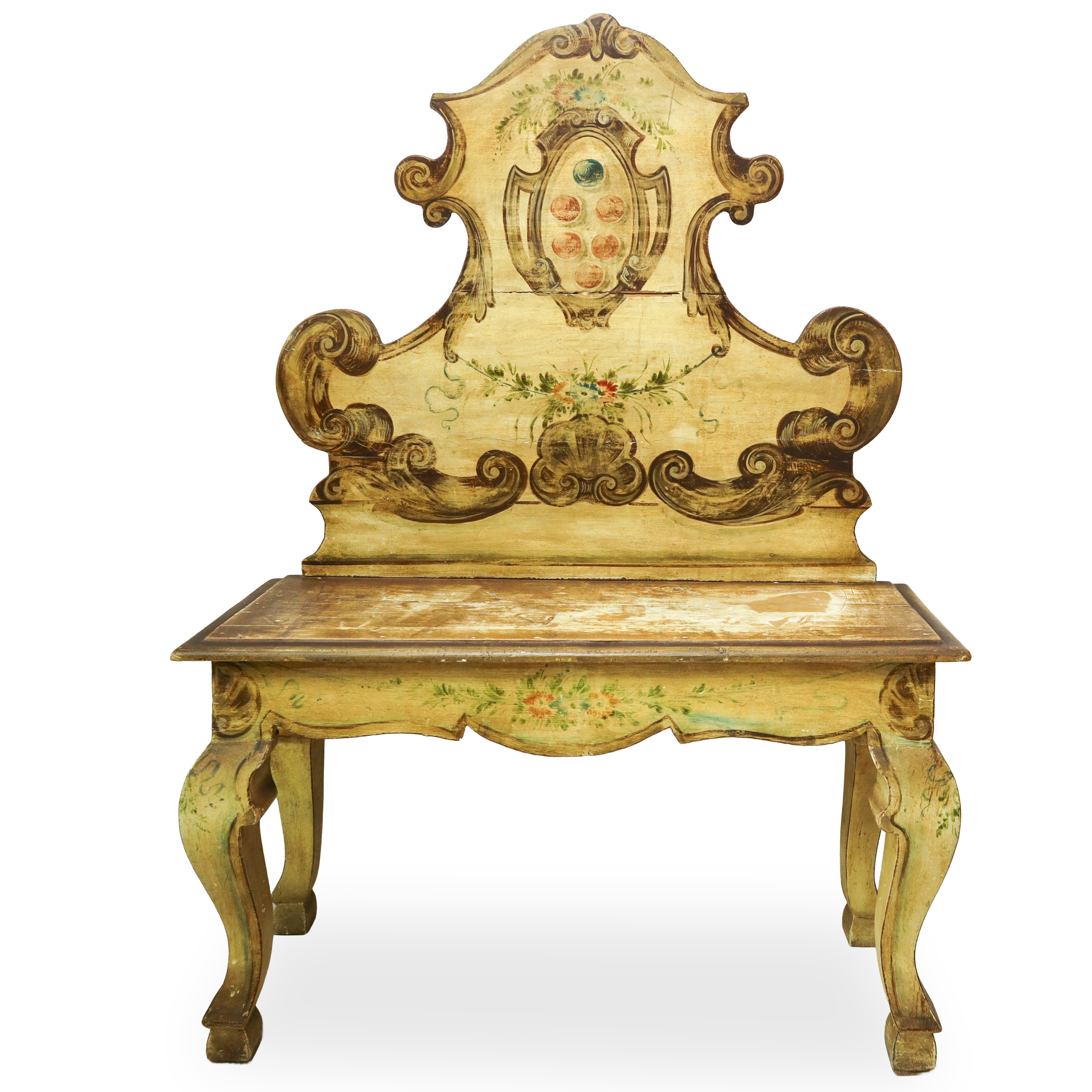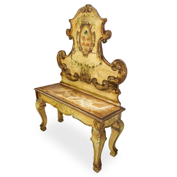 Bench with lacquered and painted riser with central coat of arms, 19th century