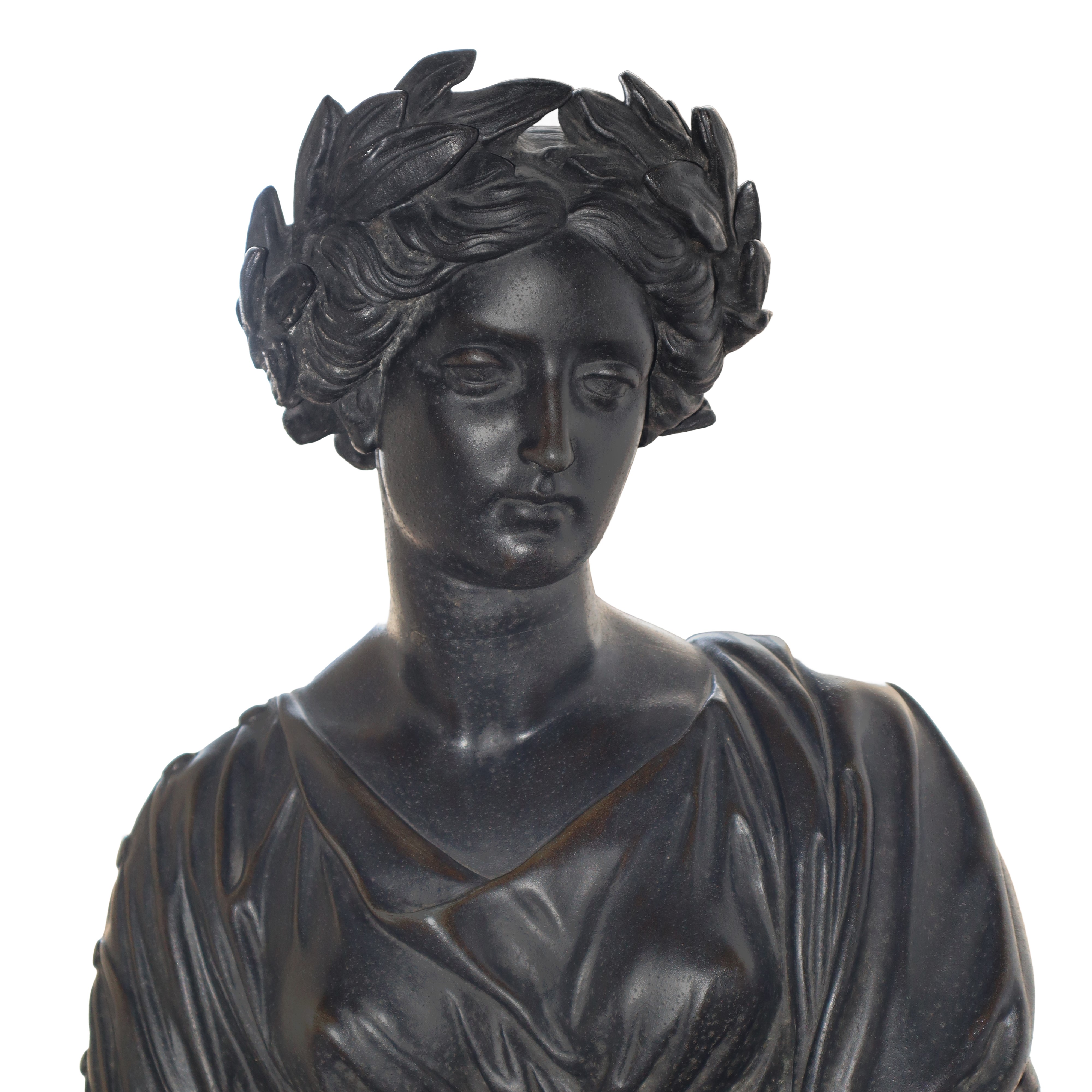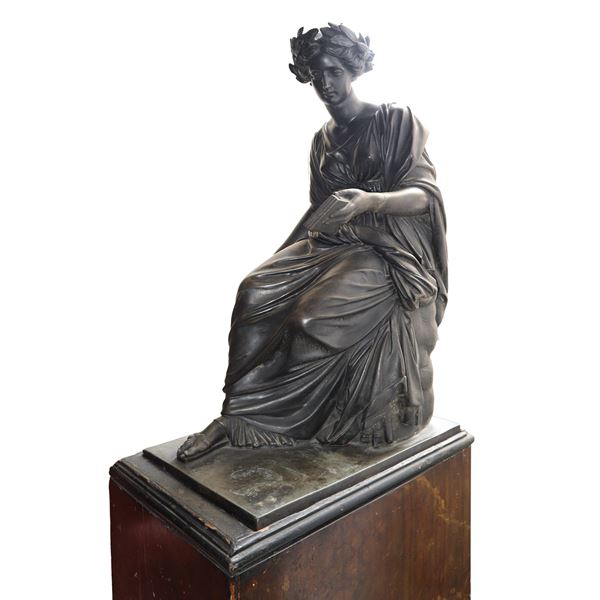 The sculpture comes with a wooden base