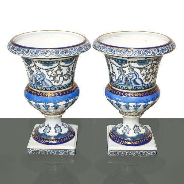 Pair of Capodimonte vases decorated with neo-Renaissance motifs, 20th centuries